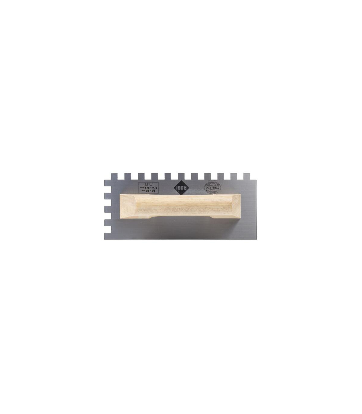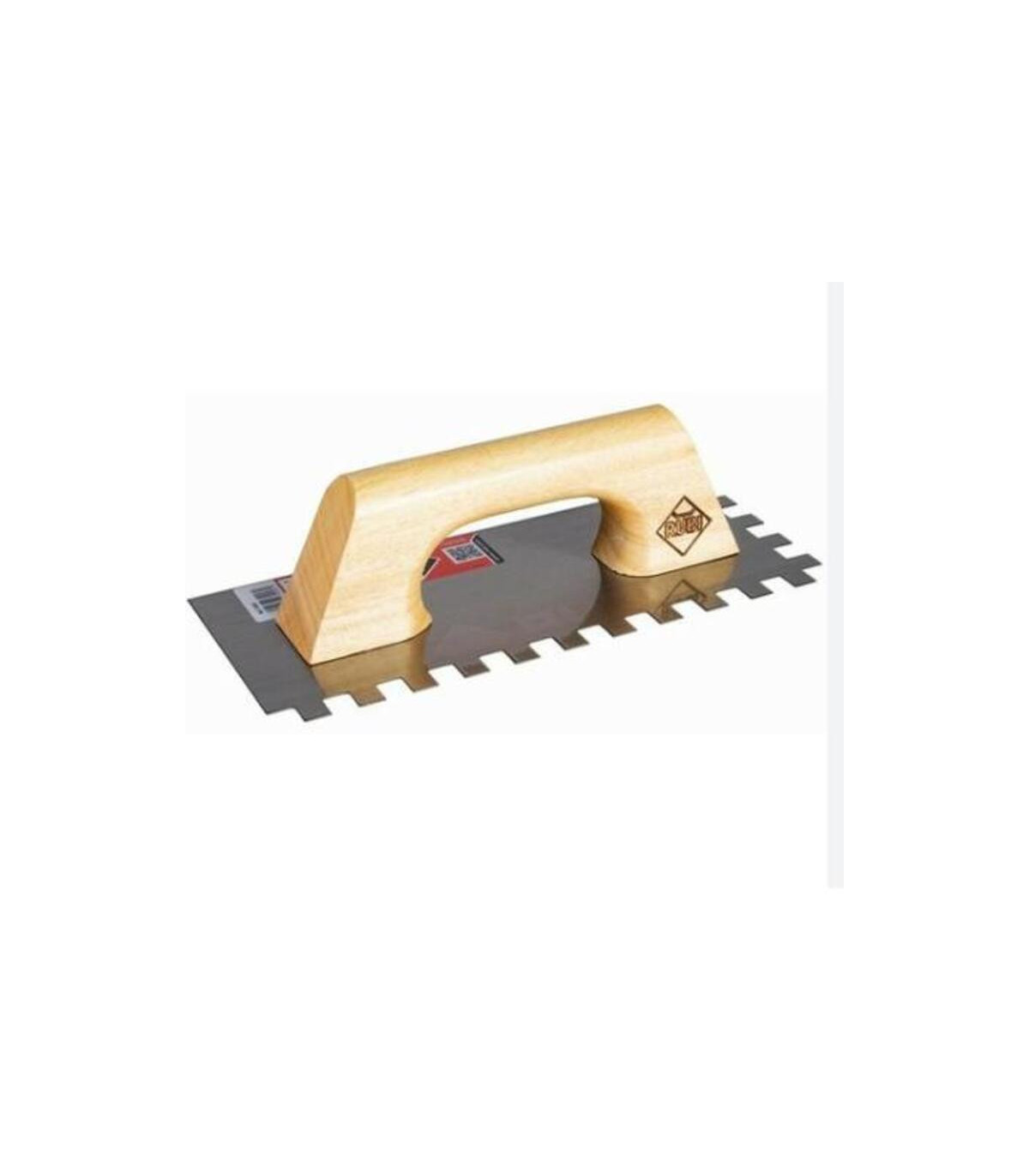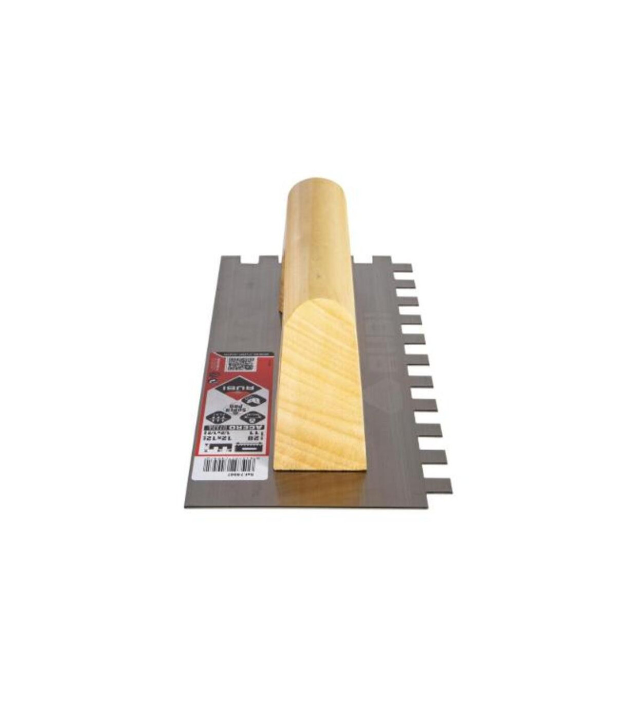 Peine de 28cm 12x12 con mango de madera cerrado, que ofrece al colocador profesional de baldosa cerámica un mango tradicional con el tacto suave de la madera natural, gracias a los completos proceso de fresado, lijado y barnizado. La empuñadura cerrada ofrece una herramienta simétrica, perfecta para ser utilizada tanto por personas diestras como zurdas, a la vez que nos da una herramienta más centrada y fácil de controlar y manipular. La unión entre lámina y empuñadura se realiza mediante dos tornillos de acero inoxidable, para una mayor durabilidad de la herramienta. El peine Rubi 74947 está diseñado para la aplicación uniforme de adhesivos en trabajos de colocación de cerámica y revestimientos. Fabricado en acero de alta resistencia, ofrece una excelente durabilidad y un dentado 12×12 mm ideal para piezas de gran formato o adhesivos de alta carga. Su mango de madera cerrado proporciona un agarre cómodo, firme y ergonómico durante el uso. Con sus 28 cm de ancho, garantiza una distribu
