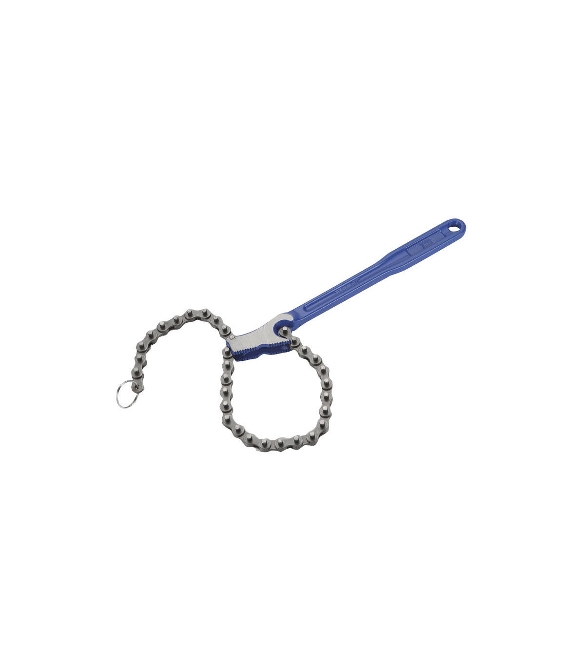 La llave de cadena forjada 12" 300 mm (cad. 500 mm, ref. 111340) es una herramienta robusta diseñada para el apriete y afloje de tuberías, racores y piezas cilíndricas en trabajos de fontanería, mantenimiento industrial y construcción. Su cadena de 500 mm permite un agarre seguro en diámetros variados, proporcionando un control preciso y eficaz durante su uso.Fabricada en acero forjado de alta calidad, esta llave combina durabilidad, resistencia y fiabilidad incluso en condiciones exigentes. Su diseño ergonómico facilita el manejo y reduce el esfuerzo en tareas prolongadas, convirtiéndola en una herramienta indispensable para profesionales que buscan eficiencia, seguridad y rendimiento en cada intervención.