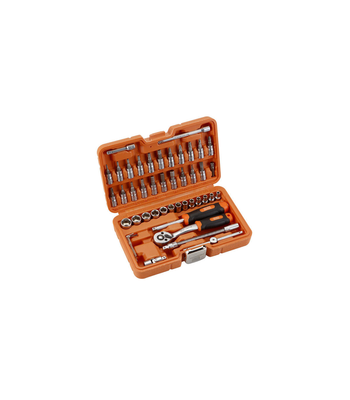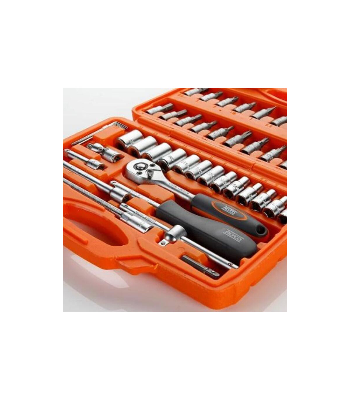 192394 Juego de Vasos 1/4" HR 46 piezas 72 dientes – ALYCO Tools es un conjunto completo de herramientas de alta precisión, diseñado para facilitar trabajos de mecánica, bricolaje y mantenimiento profesional.Incluye 46 vasos de distintas medidas con un sistema de 72 dientes, lo que permite un ajuste preciso y un giro suave, reduciendo el riesgo de desgaste y ofreciendo mayor control en espacios reducidos. Fabricado con acero de alta calidad y acabado resistente a la corrosión, garantiza durabilidad y fiabilidad incluso en condiciones exigentes.El set está organizado en un estuche compacto y resistente, que facilita su transporte, almacenamiento y rápida identificación de cada pieza, optimizando el tiempo de trabajo y la eficiencia en el taller. Este juego de vasos 1/4" ref. 192394 es ideal para profesionales y aficionados exigentes que buscan herramientas precisas, duraderas y cómodas de usar en tareas de montaje, reparación y mantenimiento de maquinaria, automóviles o instalaciones d