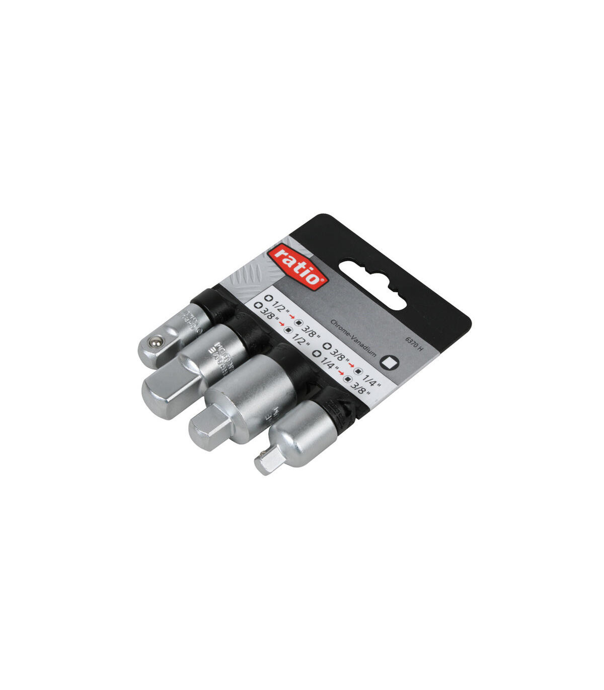 1/4"+3/8"+1/2". Reductores/ampliadores de llaves de vaso. Acero cromo-vanadio, acabado satinado.