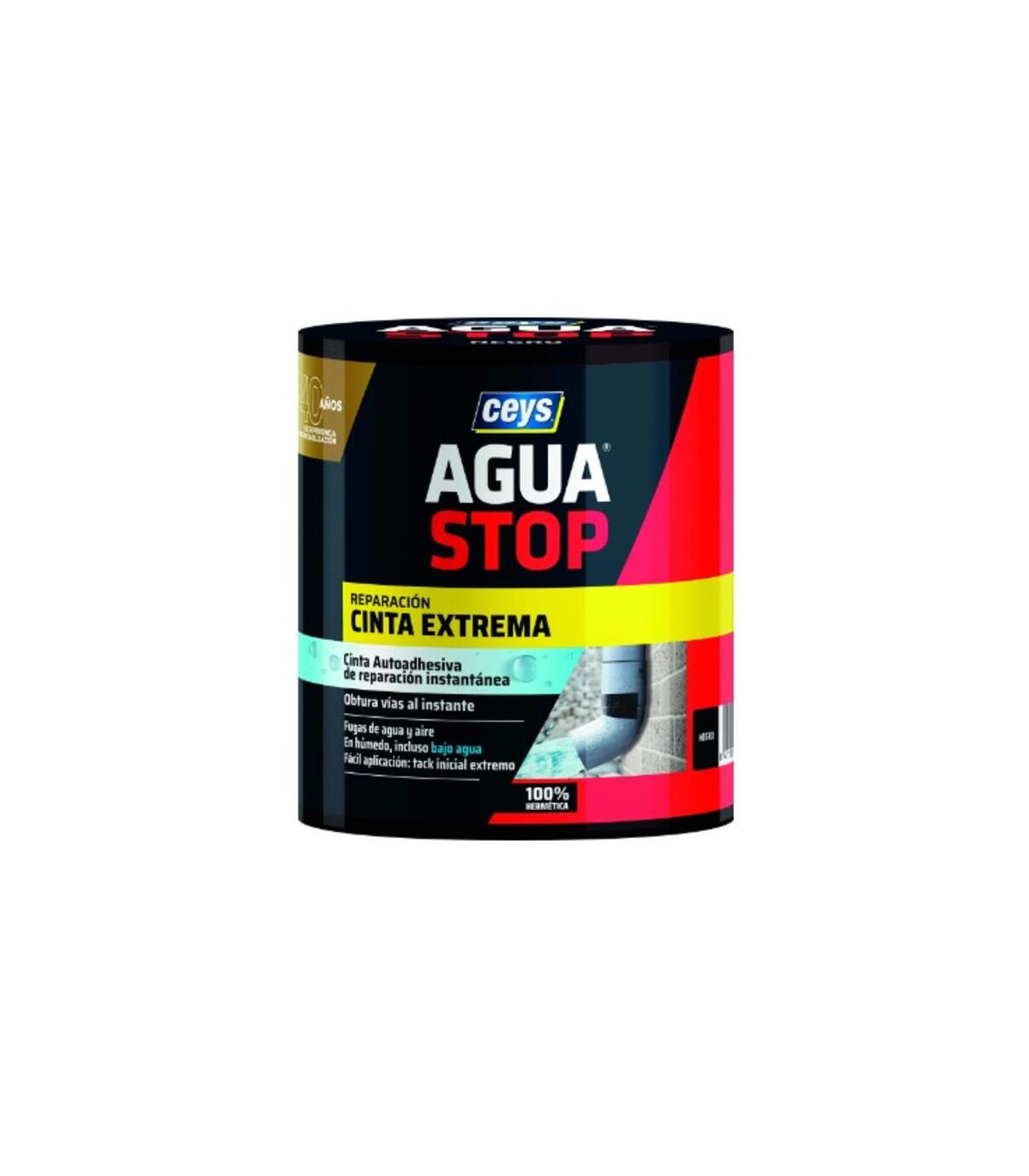 Producto sin stock temporalmente. Nos pondremos en contacto para confirmar fecha de entrega AGUASTOP CINTA EXTREMA INSTANTÁNEA es una banda autoadhesiva impermeable que actúa como barrera flexible y fuerte al agua y al vapor. Idónea para reparaciones de emergencia. Puede unir, sellar y reparar cualquier tipo de material (hormigón, cemento, PVC, metal, teja y ladrillo) y se puede aplicar en húmedo incluso en inmersión.