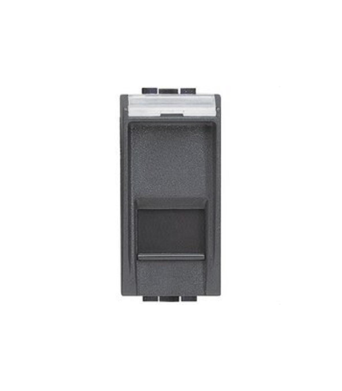 Bases de datos RJ-45 - Cat. 6 - UTP - 1 módulo - Antracita. Livinglight - Bases para datos - Instalar en soporte y placa - Bases de conexión rápida sin necesidad de herramientas - Contactos marcados con doble código de colores . El conector RJ45 BTNET Livinglight L4279C6 de BTicino es un módulo de 1 elemento diseñado para instalaciones de red en entornos residenciales y terciarios. Pertenece a la serie Livinglight Internacional y está fabricado en color antracita, ofreciendo una estética moderna y discreta. Este conector es de tipo UTP categoría 6, ideal para transmisión de datos a alta velocidad en redes Ethernet. Su sistema de conexión IDC sin herramientas permite una instalación rápida y segura, sin necesidad de crimpado, lo que lo convierte en una solución práctica para profesionales. Incluye tapa antipolvo y etiqueta identificativa, y cuenta con grado de protección IP21, siendo apto para montaje empotrado en cajas y placas compatibles con la gama Livinglight.