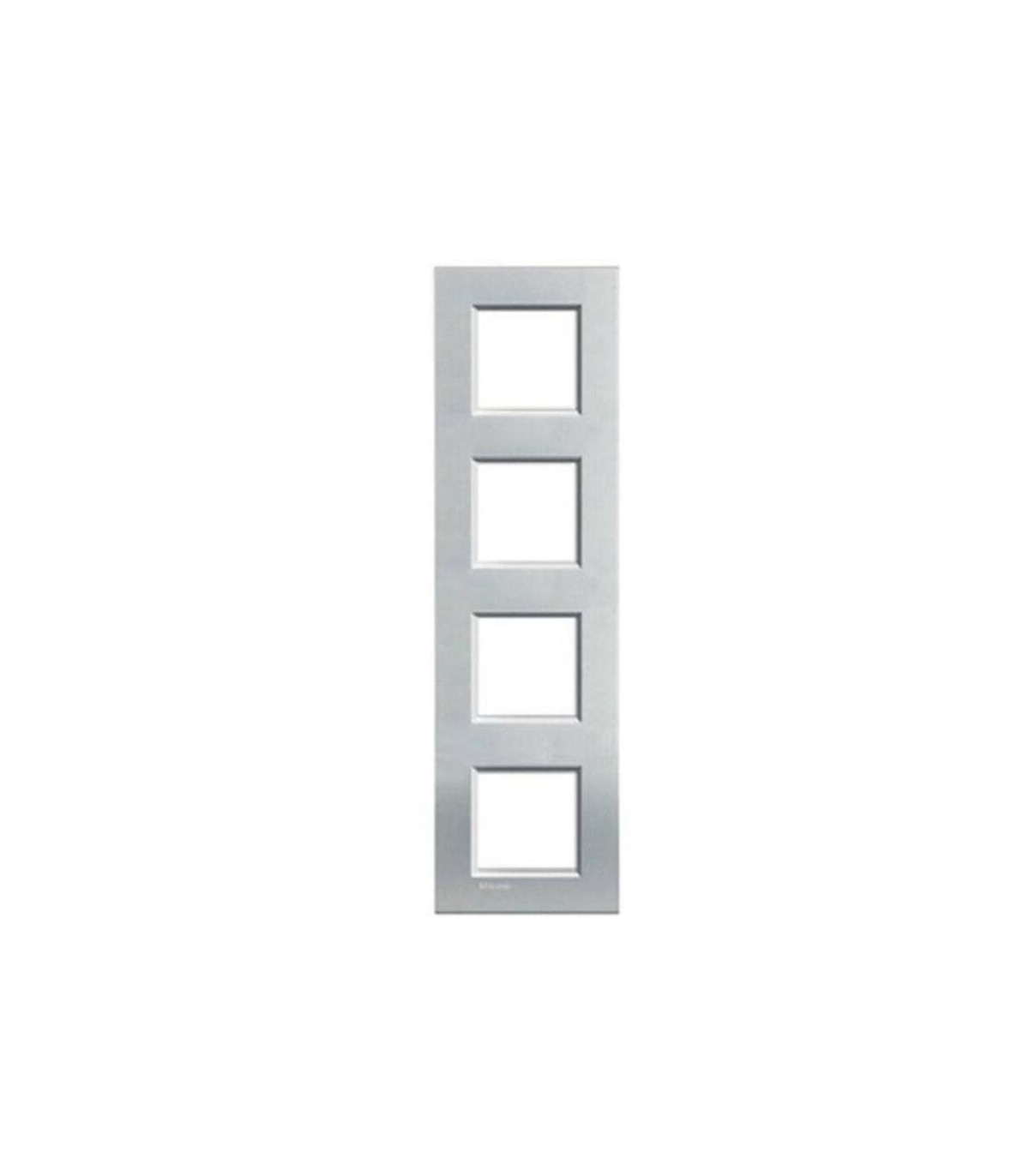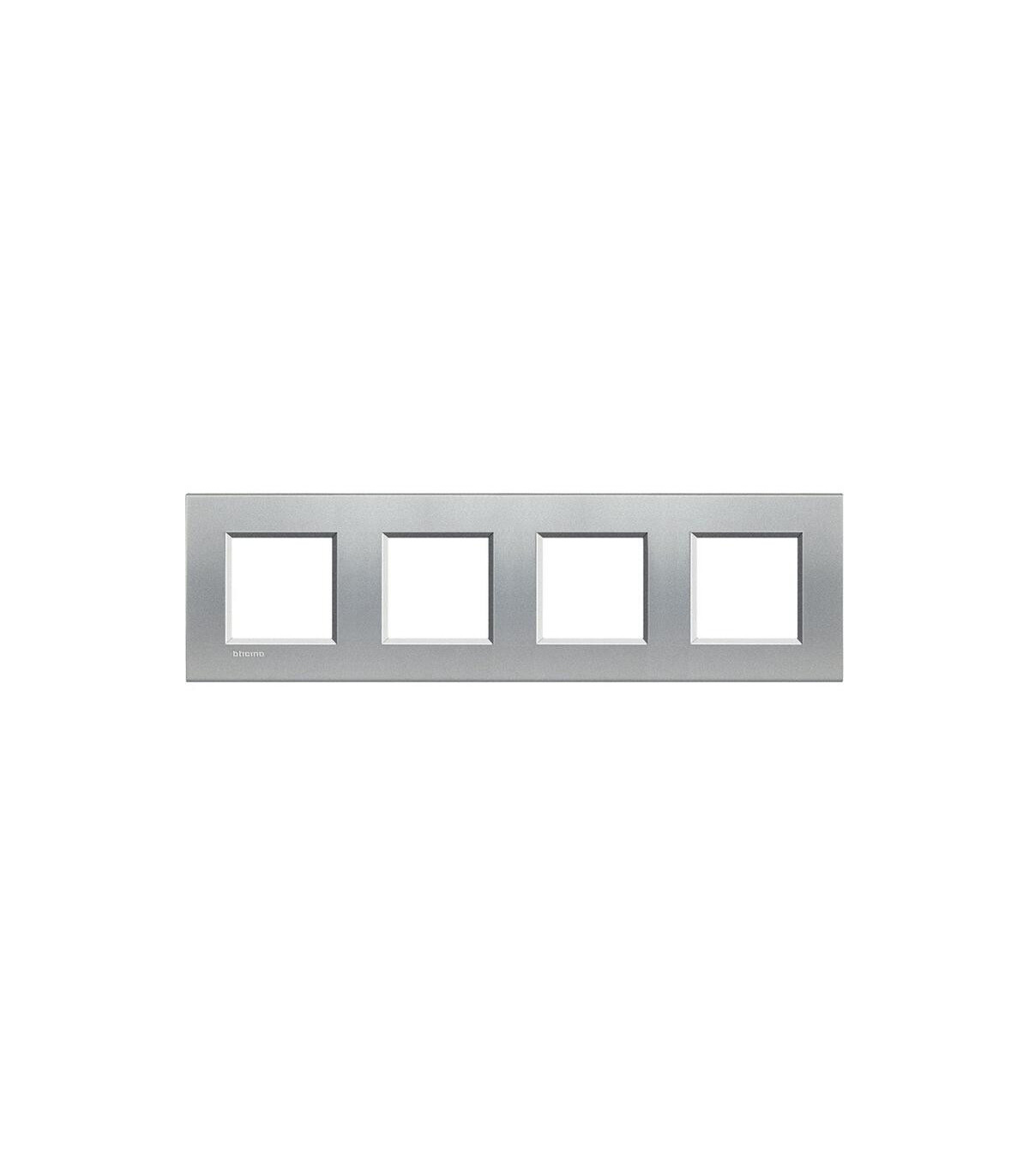2 + 2 + 2 + 2 módulos horizontal o vertical (entreeje 71) Neutros - Tech -A asociar con: - soportes Bticino a tornillos ref. LN4702M (x4) o a garras LN4702MG (x4) - cajas de empotrar Batibox para tabique hueco ref.0 800 54 (P=50) - cajas de empotrar Batibox para albañilería ref. 0 801 41 (x4). La placa Livinglight LNA4802M4TE de BTicino, con configuración de 2+2+2+2 módulos, está diseñada para ofrecer una solución estética y funcional en instalaciones eléctricas residenciales y comerciales. Fabricada en tecnopolímero de alta calidad con acabado Tech (color aluminio brillante), esta placa permite una instalación tanto horizontal como vertical, adaptándose a diferentes entornos y necesidades. Su diseño moderno y neutro facilita la integración en cualquier estilo decorativo, aportando un toque sofisticado y discreto a la instalación.