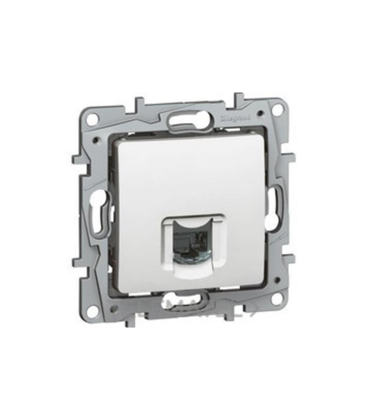 Conector NILOE RJ45 CATEGORIA 6 UTP blanco. Bases de datos Cat. 6 RJ-45 UTP - simple - Aluminio brillante - Sin garras. Niloe - Bases para datos - Los mecanismos se suministran con placas de cubierta, para equipar con pletinas embellecedoras - Montaje con tornillos o garras - Bases de conexión rápida ? sin necesidad de herramientas - Contactos marcados con doble código de colores . El conector Niloé RJ45 categoría 6 UTP en color blanco de Legrand, referencia 664773, está diseñado para garantizar conexiones de red rápidas, seguras y fiables, ideal para instalaciones residenciales y comerciales que requieren una transmisión de datos eficiente. Compatible con cables UTP de categoría 6, permite un rendimiento óptimo en redes informáticas, asegurando estabilidad y velocidad en la comunicación entre dispositivos. Su acabado en blanco aporta un diseño moderno que se integra fácilmente en cualquier entorno.Este conector Niloé RJ45 categoría 6 UTP es perfecto para profesionales y particulares q