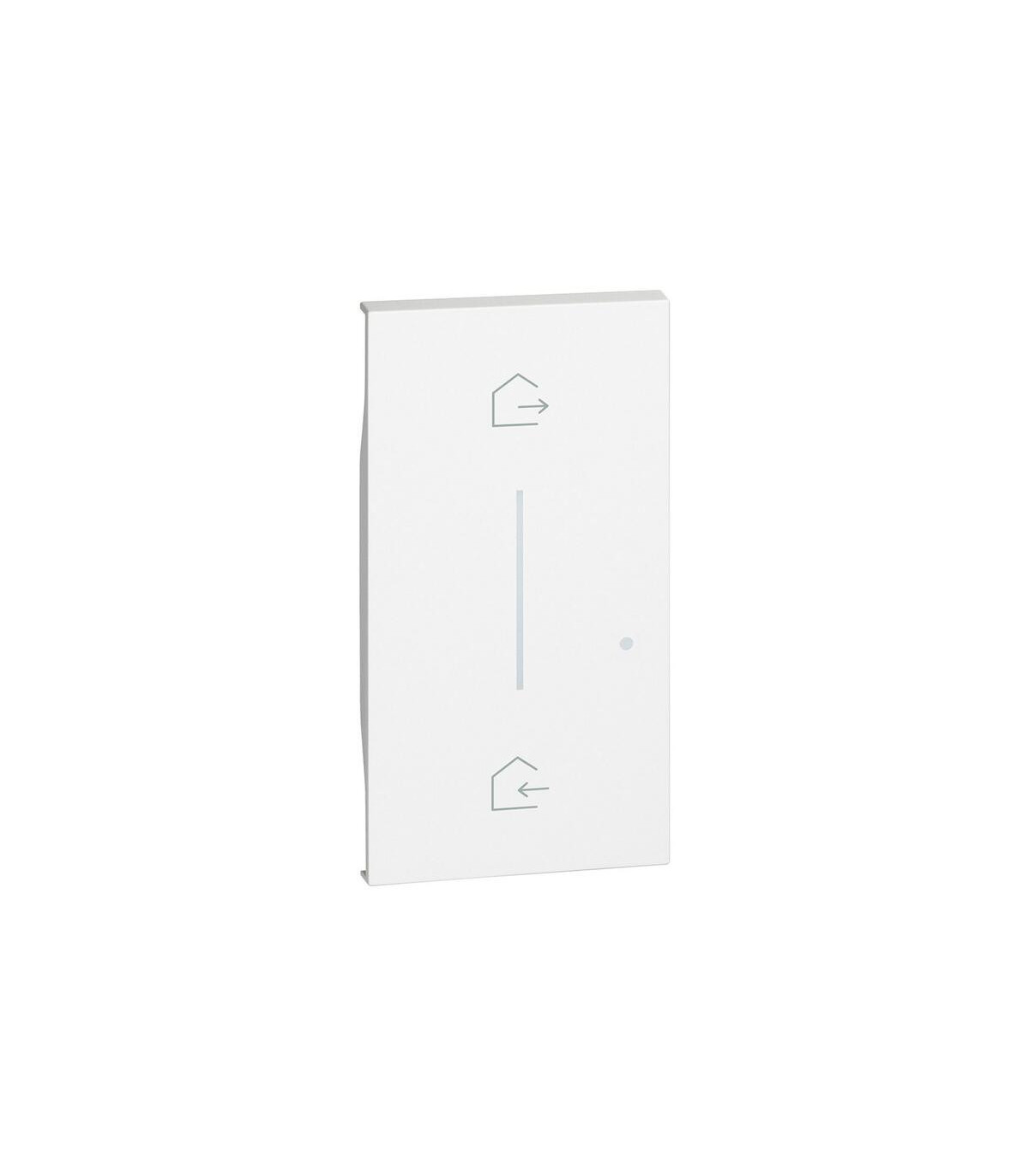 Tecla comando de escenarios inalámbrico Entrar/Salir Living Now with Netatmo. Con 2 módulos. En color blanco. La tecla comando E/S Living Now w/Netatmo 2 módulos de Bticino está diseñada para el control inalámbrico de sistemas de iluminación y automatización en instalaciones residenciales. Permite activar y desactivar circuitos de manera sencilla y eficiente, integrándose con la plataforma Netatmo para ofrecer control inteligente y personalizado desde cualquier punto de la vivienda. Su diseño de 2 módulos facilita la organización y compatibilidad con otros comandos y dispositivos de la serie Living Now.Fabricada con materiales de alta calidad en acabado BL, esta tecla comando proporciona durabilidad y un tacto agradable, garantizando un uso cómodo y seguro. Su instalación es sencilla en cajas estándar y combina funcionalidad y estética moderna, ofreciendo un producto confiable y elegante para mejorar la experiencia de control de la iluminación y otros sistemas eléctricos en el hogar.