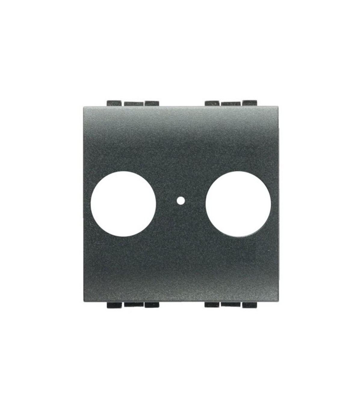 Frontal TV/R-SAT universal Livinglight, 2 módulos, color antracita, con un ancho de 155m, alto de 133mm, largo de 125mm y un peso de 260gr. Permiten la instalación en las principales bases de televisión del mercado, fijación por la parte central mediante tornillo frontal. El frontal L4212 de Bticino LivingLight está diseñado para ofrecer un acabado elegante y moderno a las bases de conexión de TV y R-SAT con 2 módulos, integrándose perfectamente en cualquier entorno doméstico o profesional. Su acabado en color antracita aporta un toque sofisticado y contemporáneo, mientras que el material resistente garantiza durabilidad y protección de los componentes internos, evitando el acceso directo a las conexiones y asegurando la seguridad de la instalación audiovisual.Además, este frontal permite una instalación rápida y sencilla, ajustándose con precisión a las bases compatibles y proporcionando un acabado limpio y profesional. Combina funcionalidad y estilo, protegiendo y organizando las con