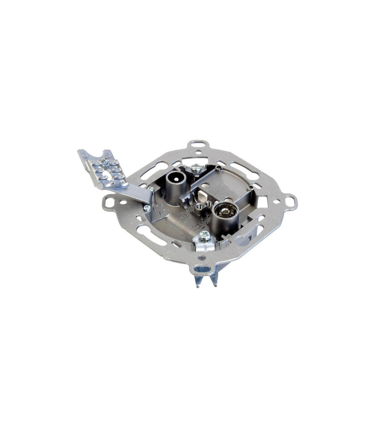Toma de paso 2 conectores: FM/TV-SAT (planta 2). Caja de paso con dos conectores CEI. El de la izquierda es un CEI macho para FM (radio) y TV terrestre, y el de la derecha es un CEI hembra para TV satélite (FI). Tiene paso de señal por lo que permite realizar una instalación en serie de varias tomas. Además, por sus pérdidas es adecuada para ser instalada en la planta 2 aprox. Se recomienda la instalación con tomas terminales ref. 5229xx. Diseño de la toma: Con garras y parte inferior cerrada.. Fabricación automatizada en línea robotizada. Apantallamiento elevado. Gran aislamiento entre salidas. La caja de paso Televés 5228 está diseñada para instalaciones de distribución de señal de televisión terrestre, radio FM y satélite en sistemas coaxiales. Equipada con dos conectores CEI, uno macho para FM/TV terrestre y otro hembra para señal satélite (FI), permite el paso de señal y corriente continua, lo que la hace ideal para instalaciones en serie. Su atenuación de 8 a 10 dB asegura una di