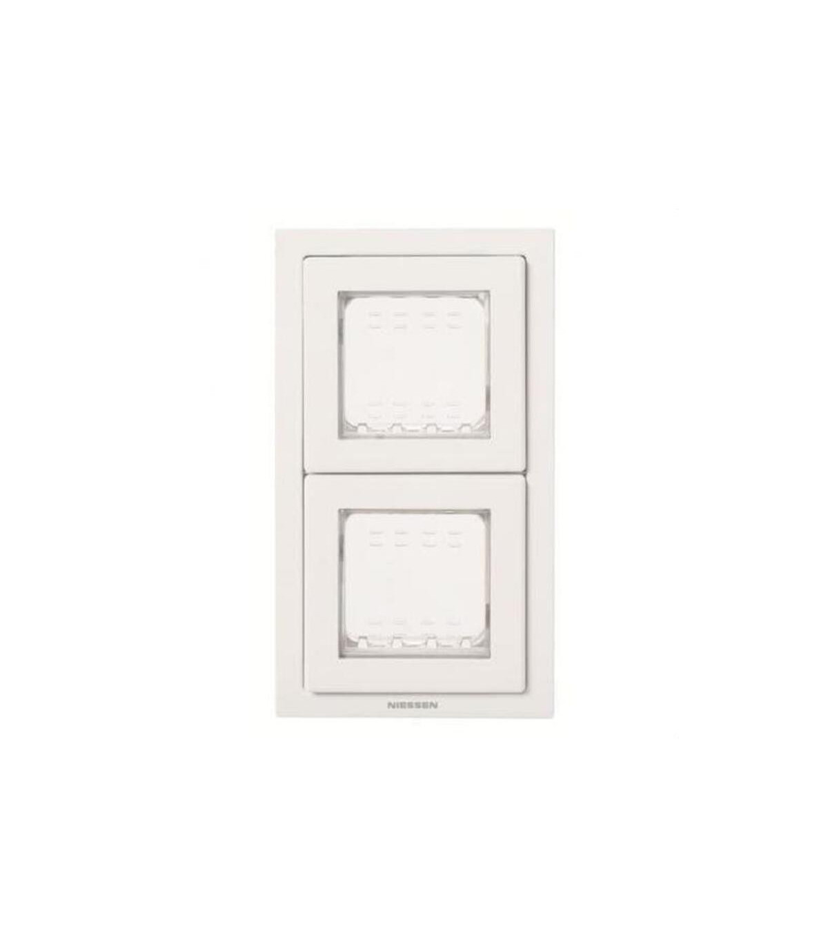 Marco IP55 2V/4M IP55 Zenit blanco. Niessen, una marca con más de cien años dedicados a convertir cada espacio en un entorno tecnológico orientado a aumentar el confort, la seguridad y la calidad en todos sus aspectos. Con soluciones que permiten disfrutar del bienestar y la tranquilidad en los hogares y los entornos en los que habitan las personas, aportando una mayor eficiencia energética a través de las soluciones de automatización. Controlar el hogar, abrir la puerta de casa o poner nuestra música favorita en toda las casa desde un dispositivo móvil, luces que se encienden a nuestro paso con la más extensa gama de detectores de movimiento y presencia, o las soluciones de iluminación LED. Todo ello con la estética de las series Niessen. La referencia 2CLA327200N1101 está relacionada con Programa de instalación de interruptores/enchufes, tratándose de un/una Cubierta. Sus características técnicas son: Con bastidor de montaje. Número RAL (similar): 9010. Resistencia al impacto (IK): I
