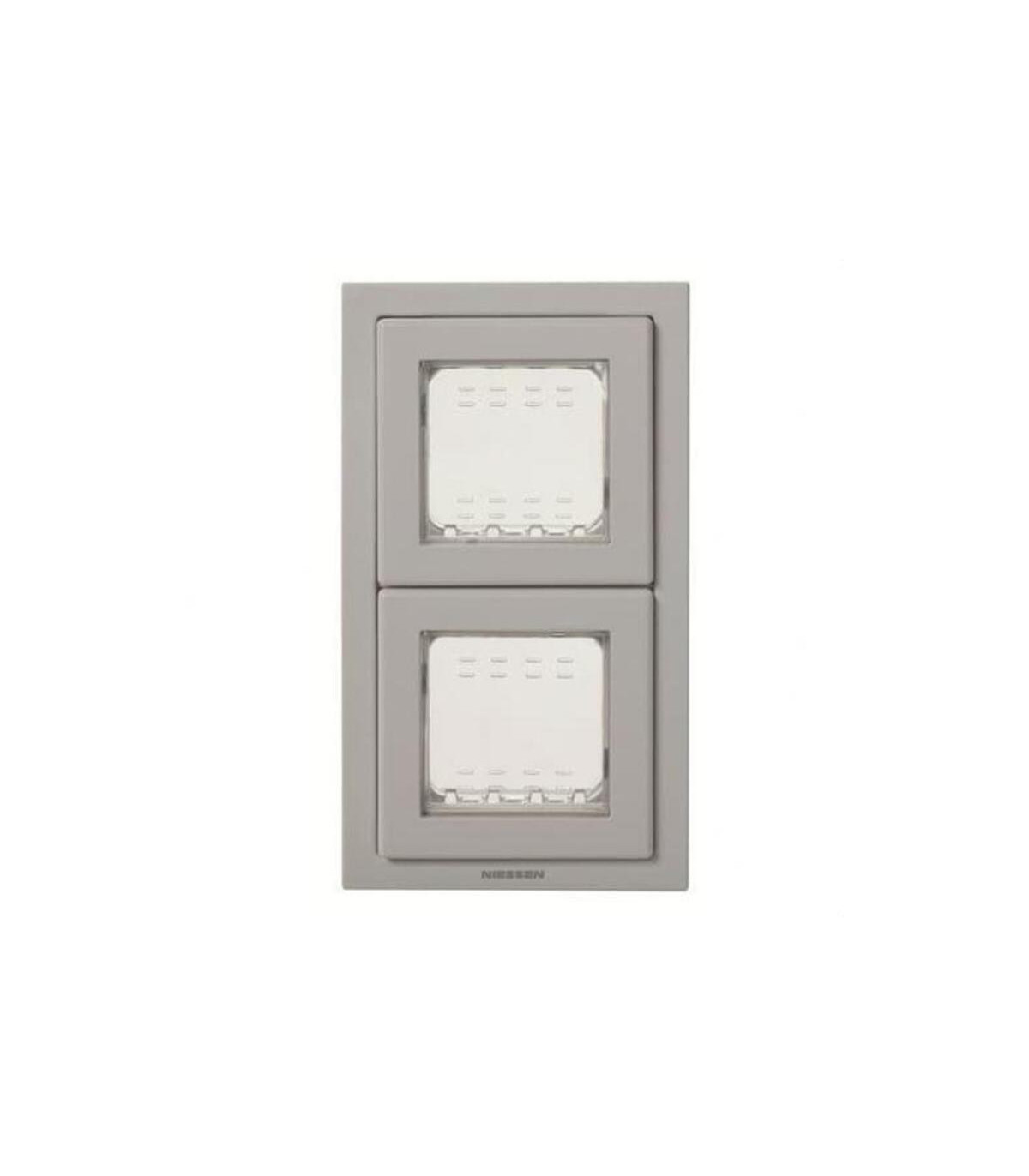 Marco IP55 2V/4M IP55 Zenit gris. Niessen, una marca con más de cien años dedicados a convertir cada espacio en un entorno tecnológico orientado a aumentar el confort, la seguridad y la calidad en todos sus aspectos. Con soluciones que permiten disfrutar del bienestar y la tranquilidad en los hogares y los entornos en los que habitan las personas, aportando una mayor eficiencia energética a través de las soluciones de automatización. Controlar el hogar, abrir la puerta de casa o poner nuestra música favorita en toda las casa desde un dispositivo móvil, luces que se encienden a nuestro paso con la más extensa gama de detectores de movimiento y presencia, o las soluciones de iluminación LED. Todo ello con la estética de las series Niessen. La referencia 2CLA327200N1701 está relacionada con Programa de instalación de interruptores/enchufes, tratándose de un/una Cubierta. Sus características técnicas son: Con bastidor de montaje. Tratamiento de superficie: Decoración. Resistencia al impact