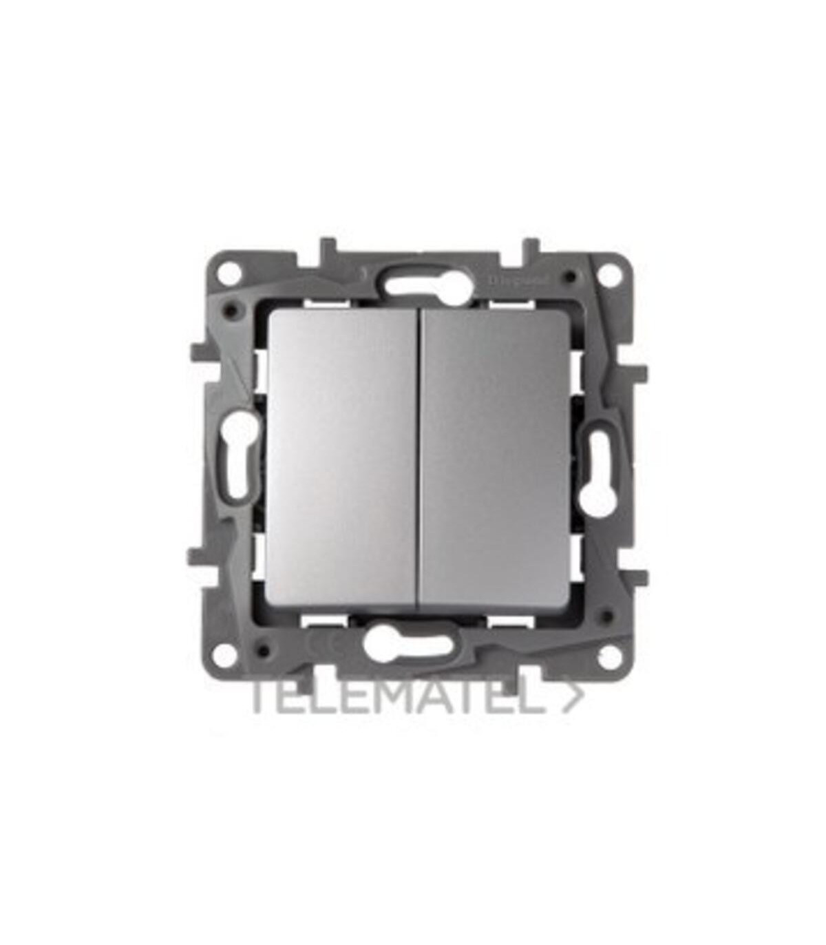 Conmutador doble Niloé - 10 AX - 250 V~ - Aluminio. Niloé - interruptores, interruptor-conmutador y transformadores - El mecanismo incluye embellecedor y soporte - Para equipar con placas embellecedoras - Montaje de los mecanismos empotrados o en superficie - Fijación con tornillo o garras con accesorios garras ref. 6 650 99 - Se suministra con protector El conmutador doble Niloé 1P 10A en aluminio de Legrand, referencia 665302, está diseñado para controlar un circuito desde dos puntos distintos, ofreciendo un funcionamiento seguro y eficiente en instalaciones eléctricas residenciales, comerciales e industriales. Fabricado con materiales de alta calidad, garantiza durabilidad, resistencia al uso diario y un rendimiento constante. Su acabado en aluminio proporciona un toque moderno y elegante que se integra fácilmente en cualquier entorno.Este conmutador doble Niloé 1P 10A es ideal tanto para profesionales como para particulares que buscan funcionalidad, seguridad y facilidad de instala