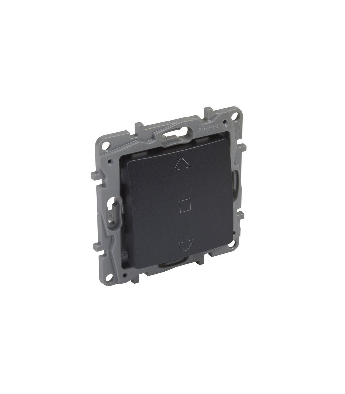Interruptor de persianas Niloé - 3 posiciones - Antracita. Niloé - control de persianas, VMC y calefacción - Mecanismo con embellecedor y soporte incluido - Montaje de los mecanismos empotrados o en superficie - Fijación con tornillos o garras con accesorios garras ref. 6 650 99 - Se suministra con protector El conmutador doble persiana Niloé 6A en acabado antracita de Legrand está diseñado para ofrecer un control eficiente y seguro de persianas y cortinas en instalaciones domésticas e industriales. Su doble función permite manejar dos persianas de manera independiente desde un mismo punto, facilitando la regulación de la luz y la privacidad en diferentes estancias. Con capacidad de 6 amperios, garantiza un funcionamiento fiable y preciso, adaptándose a distintos sistemas eléctricos y proporcionando comodidad en el uso diario.Fabricado con materiales de alta calidad, este conmutador combina durabilidad, resistencia al desgaste y un diseño moderno y elegante que se integra perfectamente