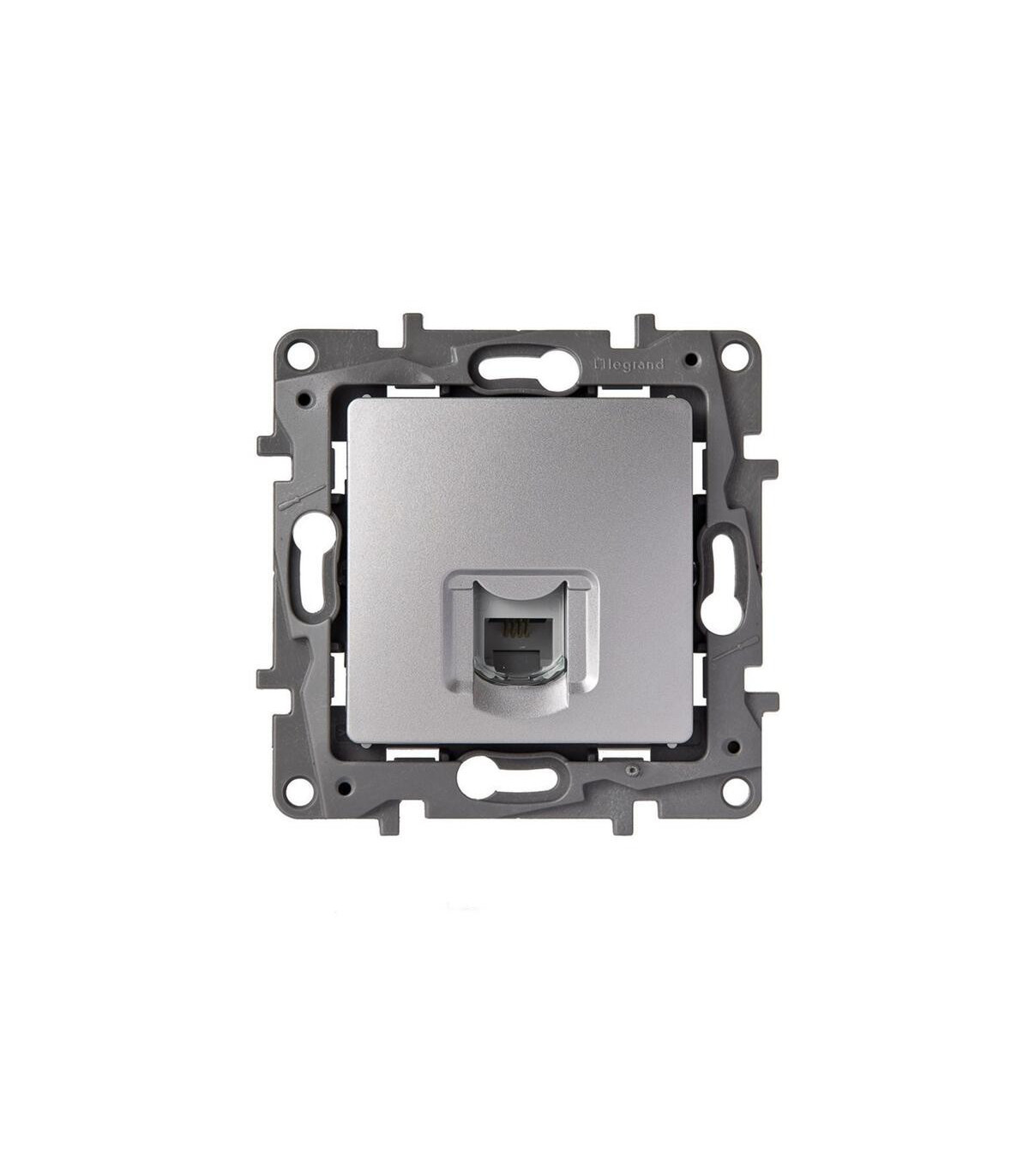 Base de teléfono RJ 12 Niloé - montaje con tornillos - aluminio. Niloé - bases de teléfono y datos - El mecanismo incluye embellecedor y soporte - Para equipar con placas embellecedoras - Fijación con tornillos - Fijación con garras mediante el accesorio Ref. 6 650 99 - Se suministra con protector La base de teléfono RJ12 Niloé en aluminio de Legrand, referencia 665385, está diseñada para garantizar conexiones telefónicas fiables y estables en entornos residenciales y comerciales. Compatible con cables RJ12, permite transmitir voz y datos de manera eficiente, asegurando un rendimiento óptimo para sistemas de comunicación telefónica y redes internas. Su construcción con materiales de alta calidad proporciona durabilidad, resistencia al uso diario y un acabado moderno en aluminio que se integra perfectamente en cualquier instalación.Esta base de teléfono RJ12 Niloé es ideal para profesionales y particulares que buscan conectividad segura, funcionalidad y facilidad de instalación. Su dise