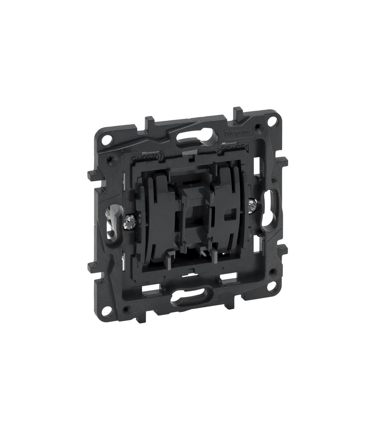Cruzamiento 10 AX - 250 V~-A equipar con tecla y placa embellecedora de acabado - Montaje empotrado o en superficie - fijación con tornillos o garras (incluidas con el mecanismo) - Se suministra con protector plástico para la protección durante la instalación. El mecanismo de cruzamiento Legrand Niloé Step Ref. 864007 está diseñado para permitir el control de un punto de luz desde tres ubicaciones distintas, siendo ideal para instalaciones eléctricas en viviendas y espacios comerciales. Funciona con una intensidad de 10AX y un voltaje de 250V, y se instala mediante embornamiento con tornillos o garras, lo que facilita su montaje tanto en reformas como en obra nueva. Este mecanismo debe complementarse con una tecla y una placa embellecedora para su acabado final.