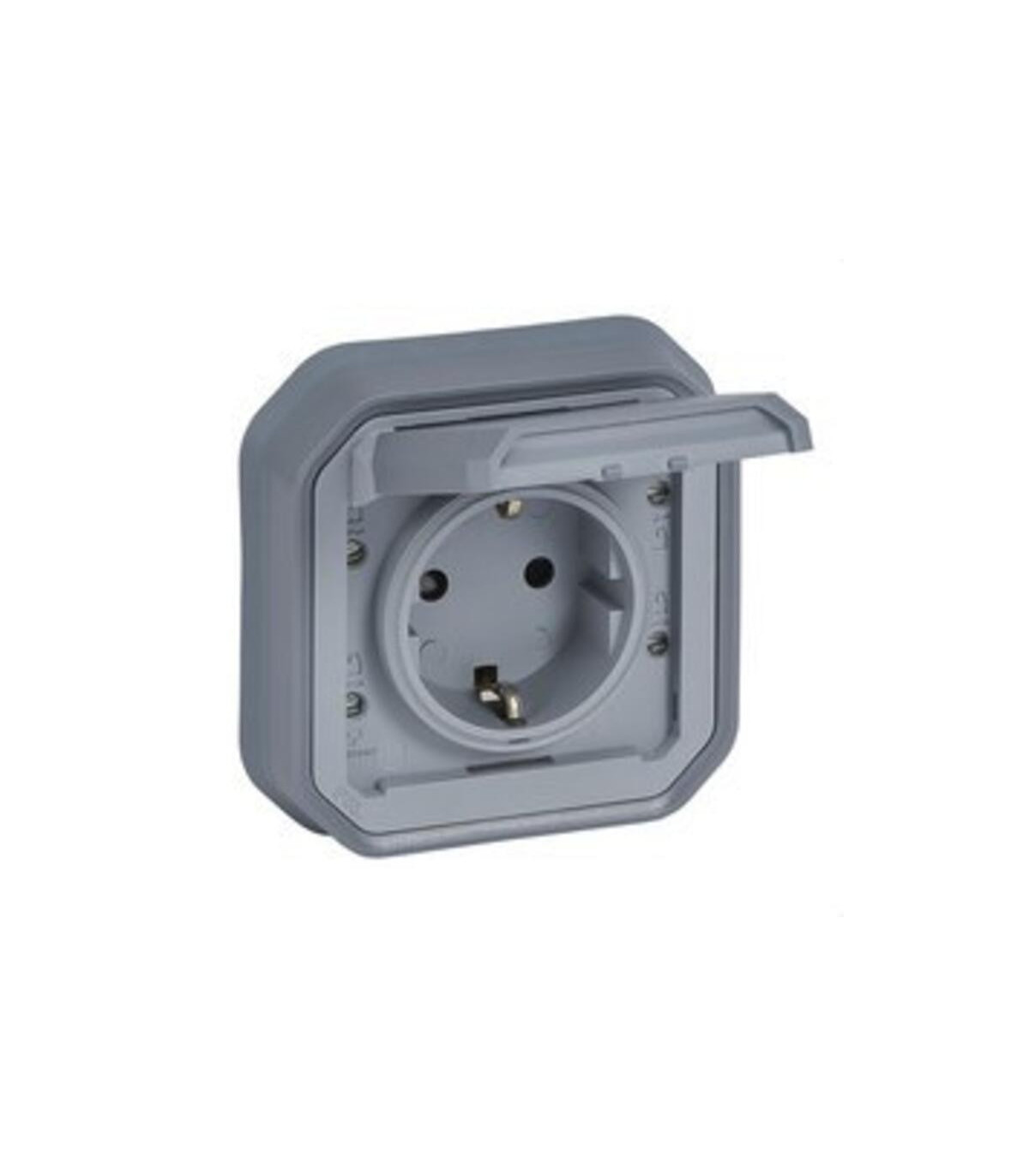 La Base de Corriente Monobloc Empotrada Plexo IP55 de Legrand es una solución resistente y segura para instalaciones eléctricas que requieren protección contra el agua y el polvo. Diseñada para montaje empotrado, ofrece una conexión fiable gracias a su embornamiento con tornillos, asegurando una fijación firme y duradera.Este modelo cuenta con 2 polos + toma de tierra (2P+T) y soporta una intensidad de 16A a 250V, lo que la hace adecuada para una amplia variedad de aplicaciones eléctricas. Su grado de protección IP55 garantiza resistencia frente a la humedad y partículas de polvo, mientras que su clasificación IK08 le otorga una alta resistencia a impactos.El acabado en gris mate le proporciona un diseño discreto y moderno, adaptándose a diferentes estilos de instalación. Además, su tapa abatible mejora la seguridad y evita la acumulación de suciedad en los contactos