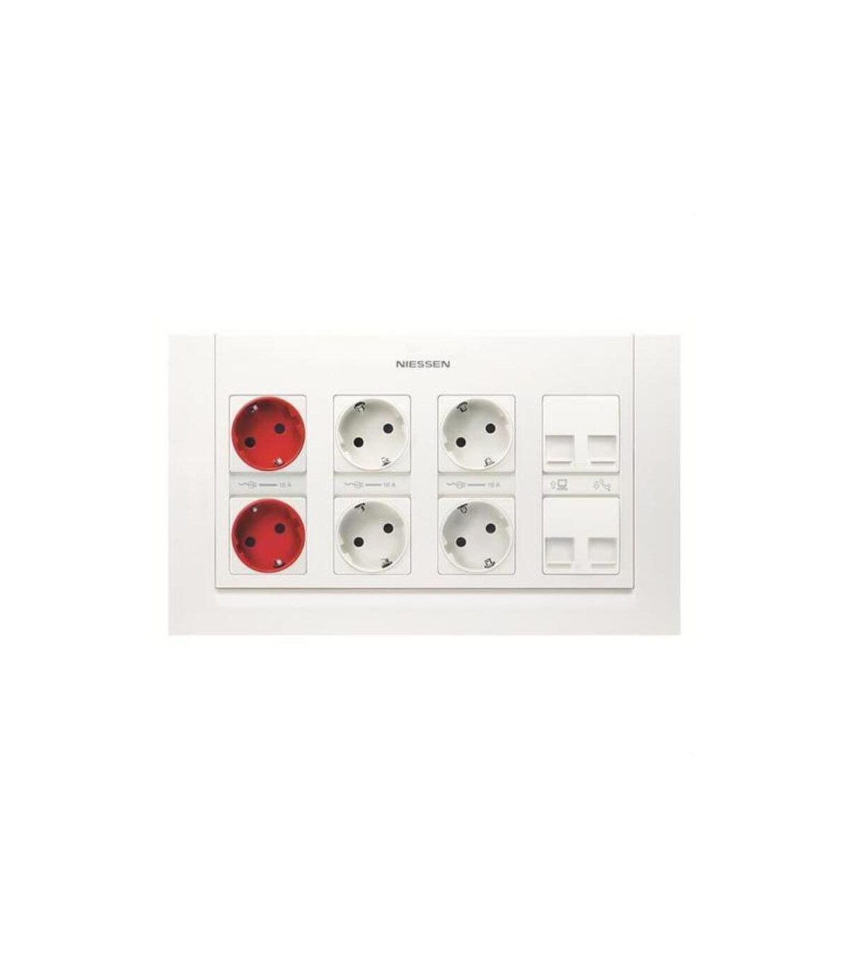 Kit 4 columnas 4BL+2RJ+4RJ45 superficie blanco. Niessen, una marca con más de cien años dedicados a convertir cada espacio en un entorno tecnológico orientado a aumentar el confort, la seguridad y la calidad en todos sus aspectos. Con soluciones que permiten disfrutar del bienestar y la tranquilidad en los hogares y los entornos en los que habitan las personas, aportando una mayor eficiencia energética a través de las soluciones de automatización. Controlar el hogar, abrir la puerta de casa o poner nuestra música favorita en toda las casa desde un dispositivo móvil, luces que se encienden a nuestro paso con la más extensa gama de detectores de movimiento y presencia, o las soluciones de iluminación LED. Todo ello con la estética de las series Niessen. La referencia 2CLA110000T1001 está relacionada con Programa de instalación de interruptores/enchufes, tratándose de un/una Base múltiple de enchufes de pupitre. Sus características técnicas son: Longitud: 45 mm. Color: Blanco. Número de c