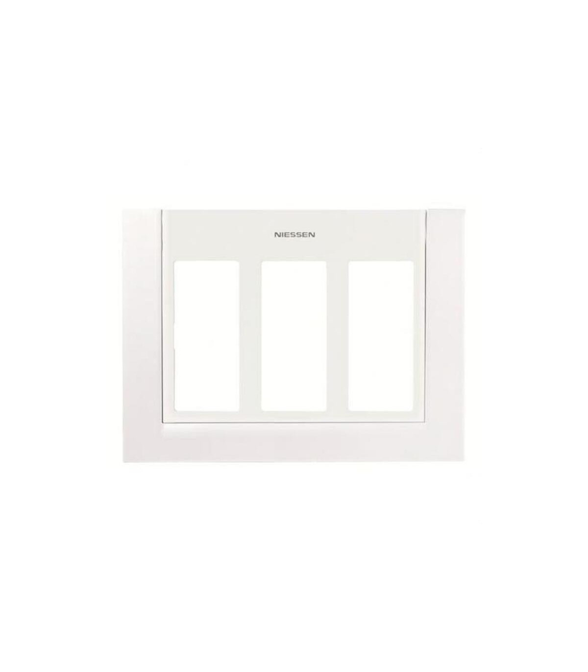 Placa para caja / zócalo con 3 columnas blanco. Niessen, una marca con más de cien años dedicados a convertir cada espacio en un entorno tecnológico orientado a aumentar el confort, la seguridad y la calidad en todos sus aspectos. Con soluciones que permiten disfrutar del bienestar y la tranquilidad en los hogares y los entornos en los que habitan las personas, aportando una mayor eficiencia energética a través de las soluciones de automatización. Controlar el hogar, abrir la puerta de casa o poner nuestra música favorita en toda las casa desde un dispositivo móvil, luces que se encienden a nuestro paso con la más extensa gama de detectores de movimiento y presencia, o las soluciones de iluminación LED. Todo ello con la estética de las series Niessen. La referencia 2CLA117300T1101 está relacionada con Programa de instalación de interruptores/enchufes, tratándose de un/una Elemento de control/cubierta para dispositivos de conmutación domésticos. Sus características técnicas son: Tratami