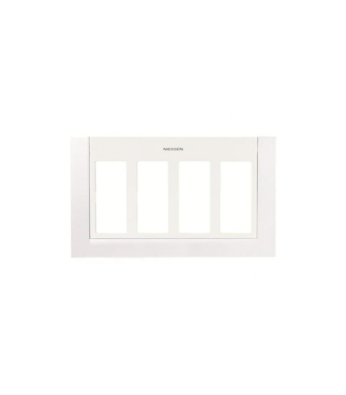 Placa para caja / zócalo con 4 columnas blanco. Niessen, una marca con más de cien años dedicados a convertir cada espacio en un entorno tecnológico orientado a aumentar el confort, la seguridad y la calidad en todos sus aspectos. Con soluciones que permiten disfrutar del bienestar y la tranquilidad en los hogares y los entornos en los que habitan las personas, aportando una mayor eficiencia energética a través de las soluciones de automatización. Controlar el hogar, abrir la puerta de casa o poner nuestra música favorita en toda las casa desde un dispositivo móvil, luces que se encienden a nuestro paso con la más extensa gama de detectores de movimiento y presencia, o las soluciones de iluminación LED. Todo ello con la estética de las series Niessen. La referencia 2CLA117400T1101 está relacionada con Programa de instalación de interruptores/enchufes, tratándose de un/una Elemento de control/cubierta para dispositivos de conmutación domésticos. Sus características técnicas son: Tratami