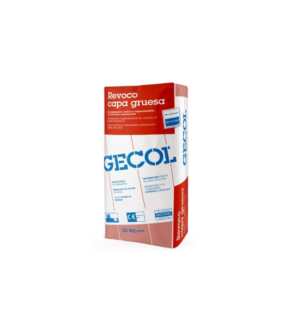 GECOL Revoco capa gruesa es un mortero de revestimiento proyectable, de elevadas resistencias, para el acabado en capa gruesa de fachadas. Apto, tanto para obra nueva, como para la rehabilitación de antiguos edificios. «Impermeable» Apto, tanto para obra nueva, como para la rehabilitación de antiguos edificios. Se puede aplicar sobre soportes habituales de albañilería (ej. cemento, ladrillo cerámico). Su uso es aconsejado como microhormigón para el revestimiento de fachadas.