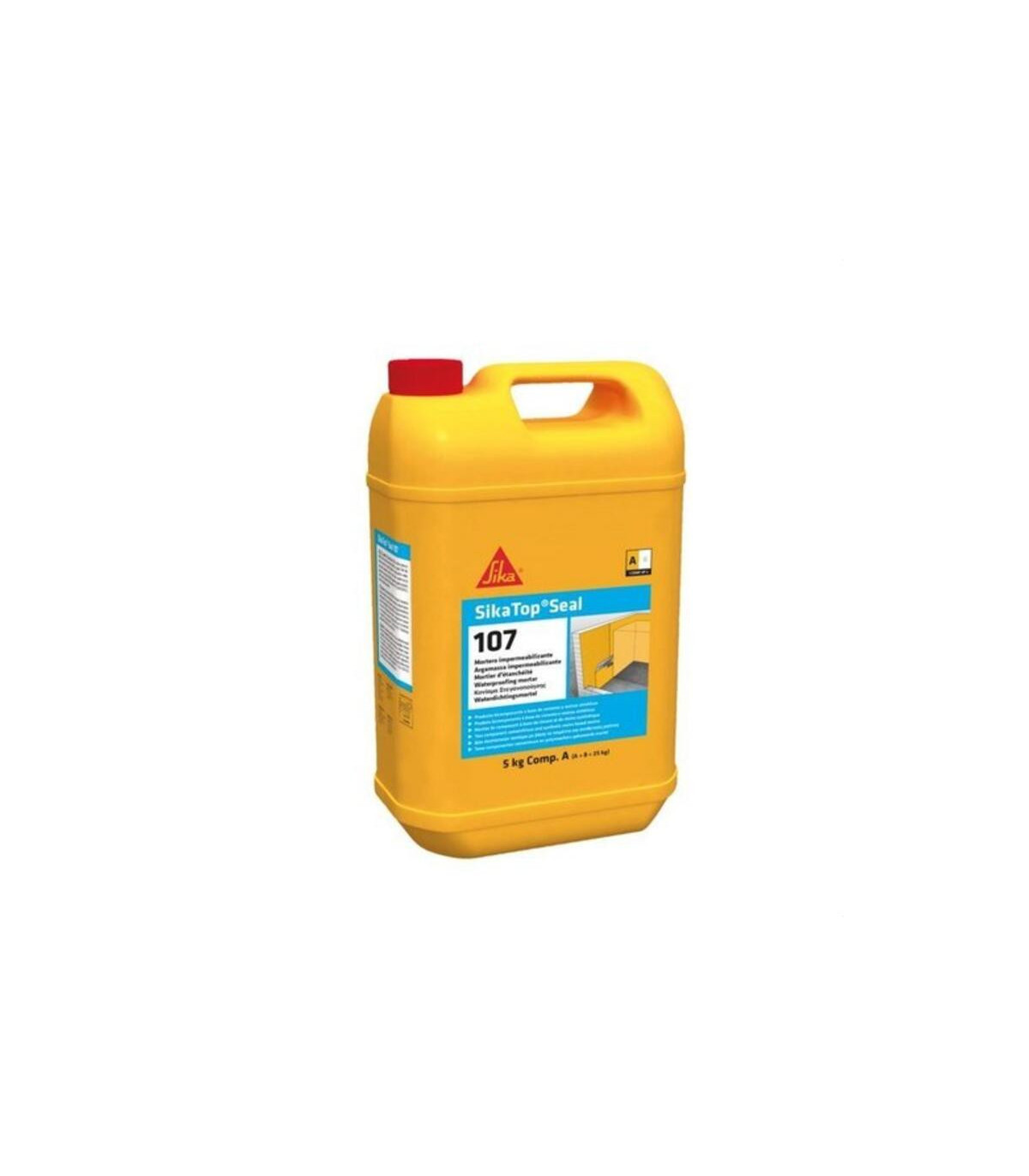 Mortero impermeabilizante SikaTop SEAL 107 gris. SikaTop Seal-107 es un mortero impermeabilizante de dos componentes, a base de una mezcla de cemento que incorpora aditivos especiales y polímeros modificados. Fácilmente aplicable a brocha o a llana. No requiere la adición de agua. Predosificado. PAL/54UNI