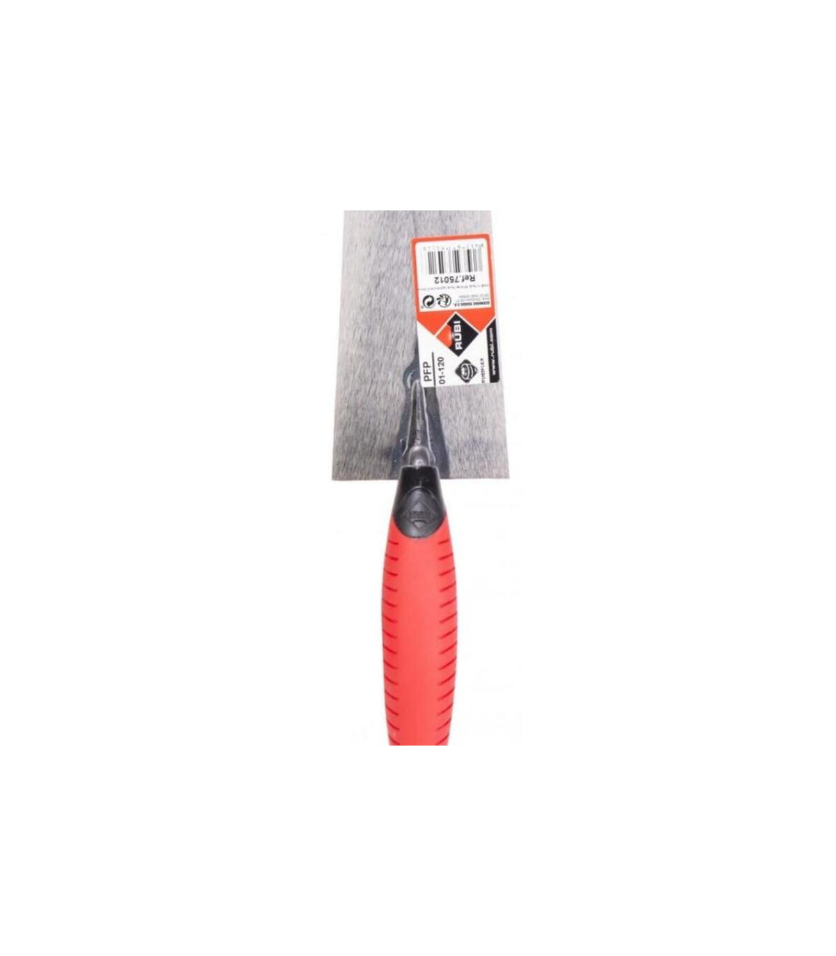 Paleta PFP01-120 con mango bimaterial RUBIFLEX que se utiliza, principalmente, para trabajos de retoque con cualquier tipo de material, pero también son muy utilizados para trabajos de acabado fino tanto con escayola como con yeso. Los paletines con mango bimaterial RUBIFLEX PFP01 son fruto de un constante trabajo de investigación tecnológica avanzada para conseguir un producto de gran calidad y resistencia. Aplicando las últimas tecnologías RUBI puede ofrecer al profesional de la construcción una gama de paletas con las mejores garantías de calidad. Las láminas de los paletines RUBI reciben un tratamiento térmico específico que mejora su flexibilidad y reduce su desgaste. La paleta RUBI PFP01-120 (Ref. 75012) está diseñada para ofrecer máxima precisión y comodidad en trabajos de albañilería y acabados finos. Su hoja forjada de 120x73 mm garantiza una perfecta planitud y resistencia, ideal para aplicar y extender materiales como yeso, escayola o adhesivos cerámicos. El mango ergonómico