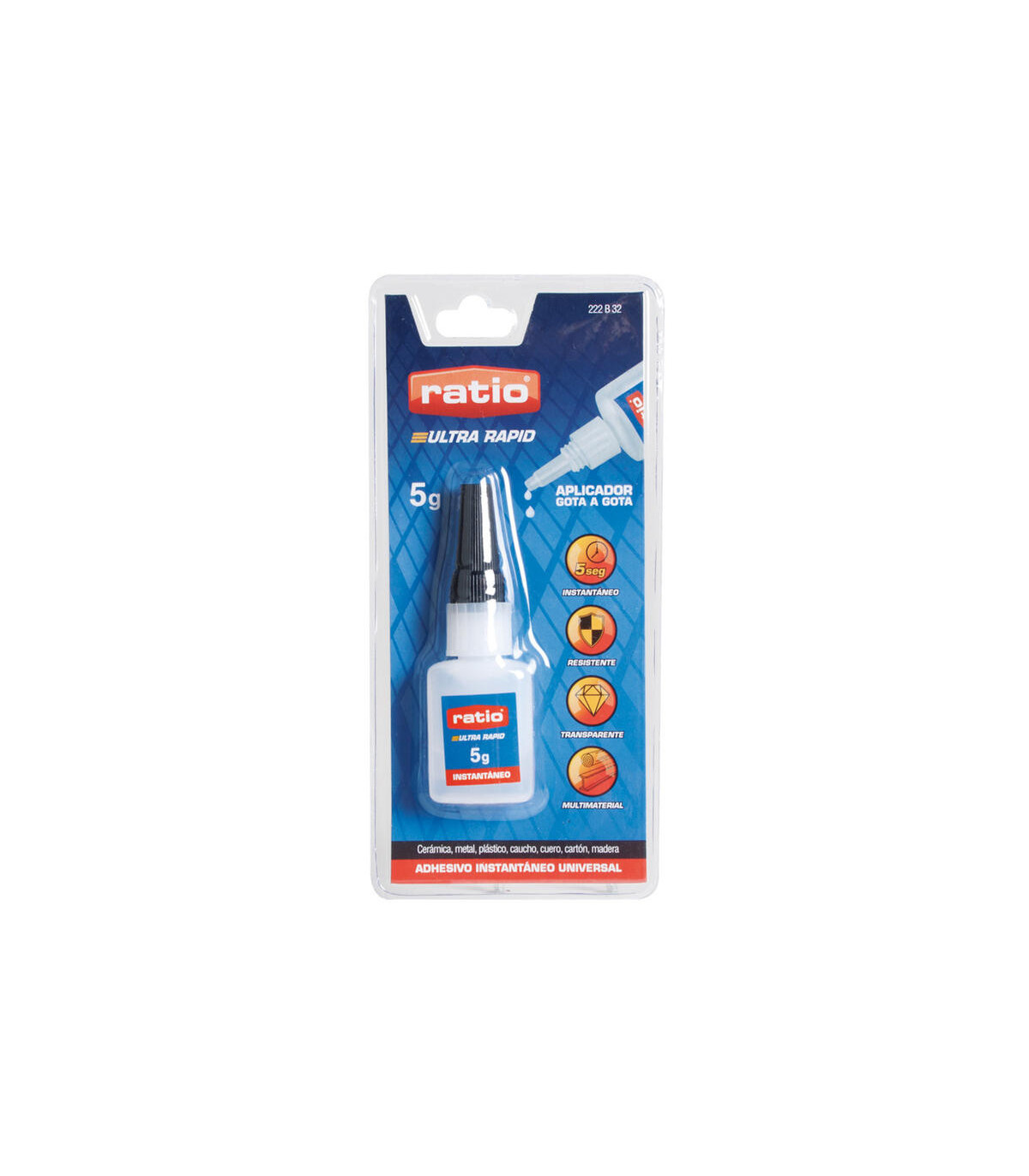 Adhesivo instantáneo RATIO universal. Pegado rápido y extrafuerte. 5 gr.