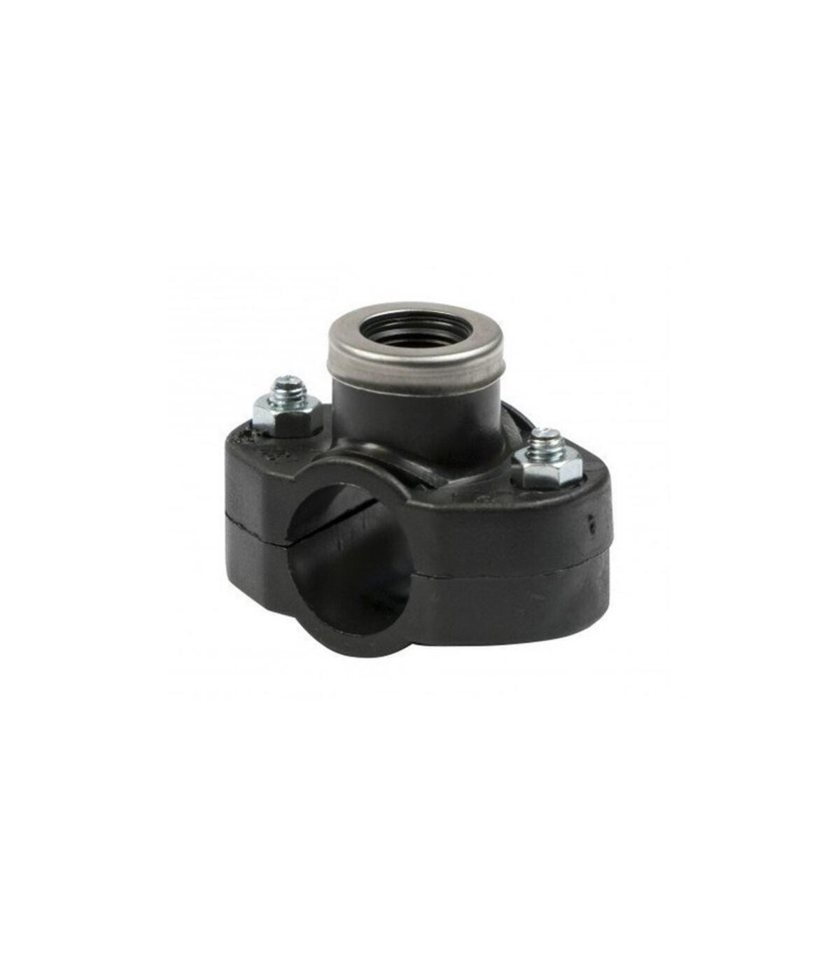 Collarín de 2 tornillos con refuerzo. Permite realizar tomas en una conducción de PVC, PP y PEAD. Refuerzo en acero inoxidable, diámetro de 50-1/2" El collarín de toma simple 8043 de IBIDE está diseñado para ofrecer una fijación segura y resistente en instalaciones de tuberías de diámetro 50-1/2". Fabricado con materiales de alta calidad, incluye dos tornillos de sujeción que garantizan un ajuste firme y estable, evitando movimientos o fugas en la unión. Además, cuenta con un refuerzo integrado que aumenta su durabilidad y soporta mejor las cargas mecánicas, asegurando un rendimiento confiable en instalaciones residenciales e industriales.Este accesorio es ideal para proyectos de fontanería y sistemas hidráulicos, proporcionando una solución práctica y duradera para unir o fijar tuberías de manera segura. Su diseño compacto y robusto facilita la instalación y permite mantener la integridad del sistema de tuberías, ofreciendo confianza y eficiencia en cada aplicación.