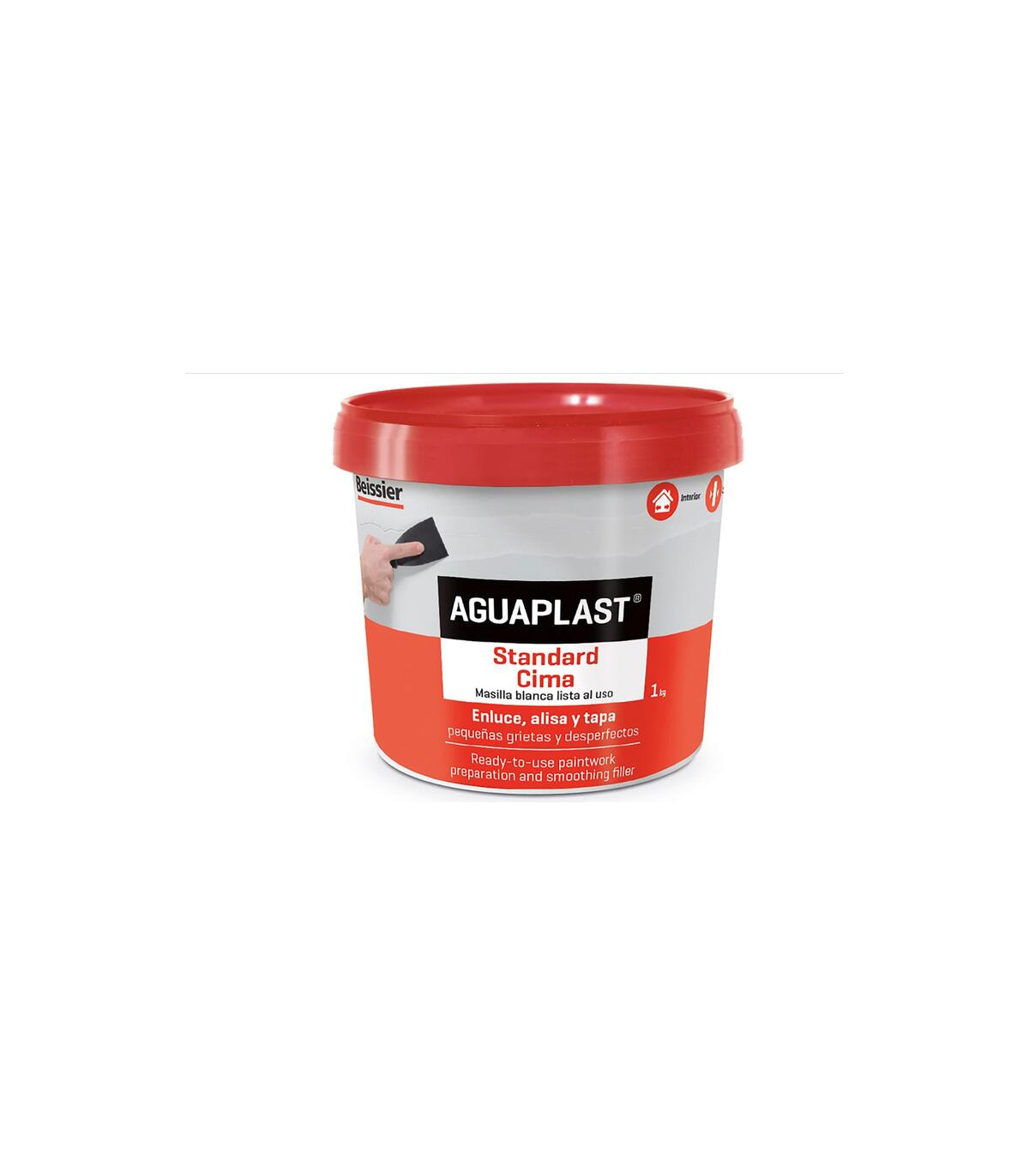 Producto sin stock temporalmente. Nos pondremos en contacto para confirmar fecha de entrega La masilla Aguaplast STD Cima Interior modelo PI09346 está formulada para reparar, alisar y preparar superficies interiores antes de pintar. Presentada en formato de 1 kg, es ideal para trabajos de renovación en paredes y techos, ofreciendo una excelente adherencia sobre yeso, cemento, pintura vieja y otros soportes habituales. Su textura fina permite una aplicación fácil y un acabado liso, facilitando el trabajo tanto a profesionales como a usuarios particulares.Gracias a su secado rápido y buena capacidad de relleno, esta masilla es perfecta para cubrir grietas, agujeros y pequeñas imperfecciones. Una vez seca, se puede lijar fácilmente para obtener una superficie uniforme lista para pintar. Es una solución práctica y eficaz para conseguir acabados de alta calidad en interiores, cumpliendo con los estándares técnicos de fiabilidad y rendimiento.