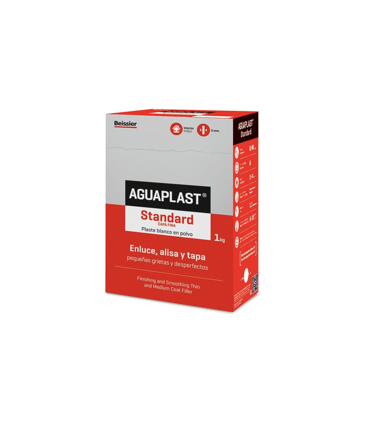 Plaste en polvo interior. Usos: Alisado en capa fina de pequeños defectos, desconchones, rayados o fisuras sobre superficies de yeso, ladrillo o cemento.