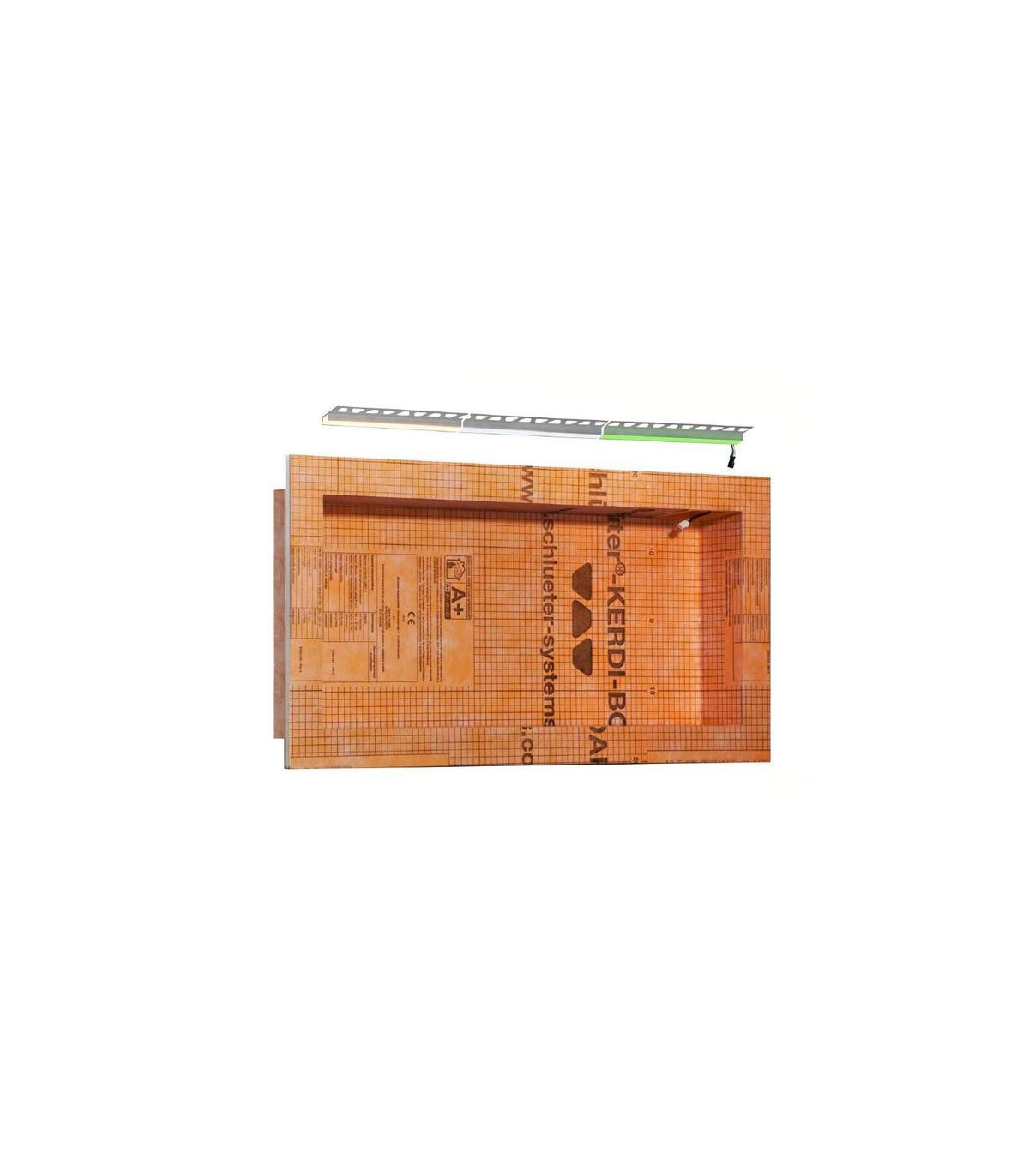 Los sets prefabricados Schlüter-KERDI-BOARD-NLT con la tecnología de iluminación LIPROTEC facilitan la construcción de hornacinas iluminadas en paredes de todo tipo.
