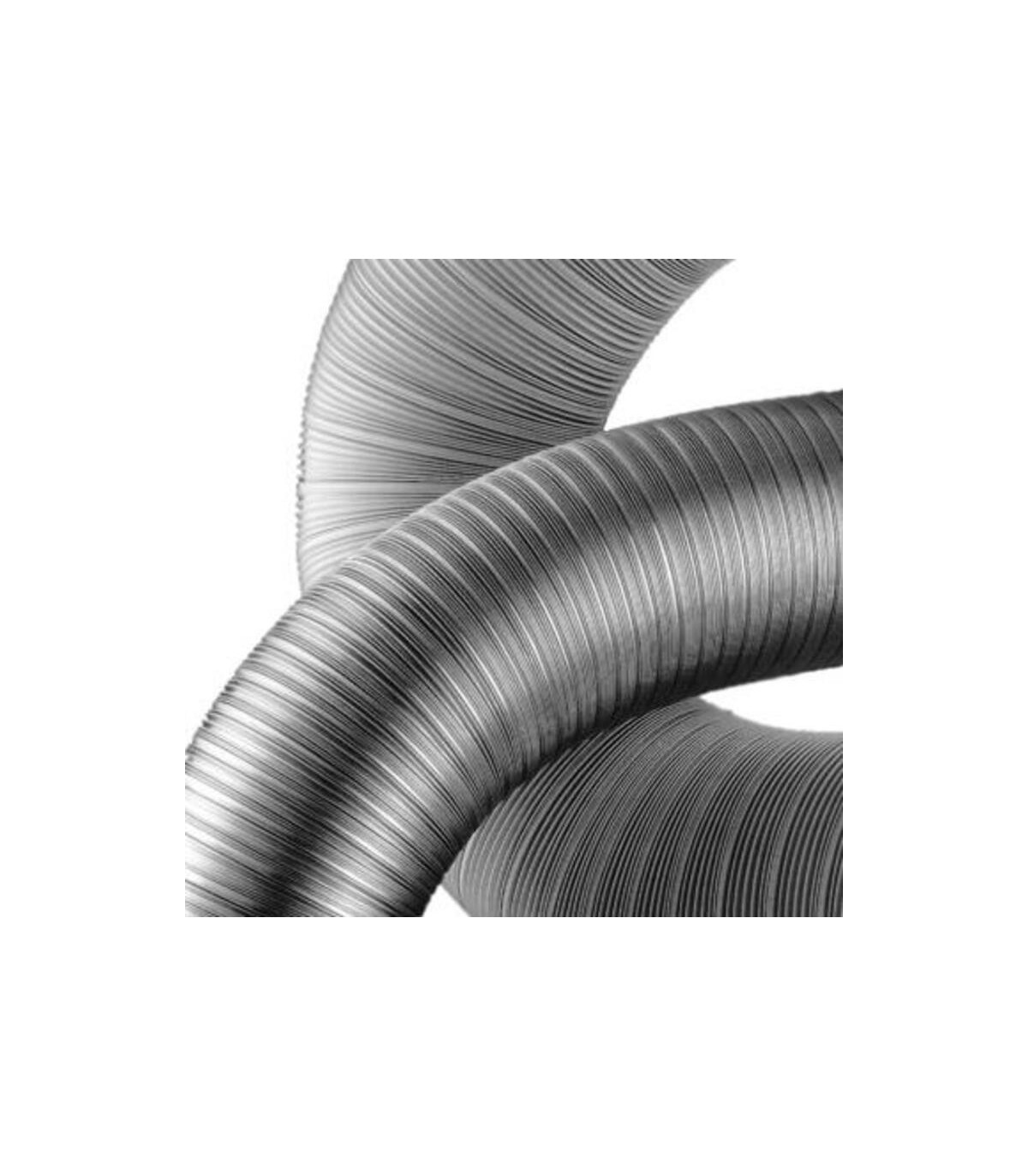 Tubo flexible diámetro 150 aluminio natural. Pellet y Pellet vitrificado. Instalación individual en interiores. Tubería fabricada en Inox en color negro. Conducción de humos para estufas de pellet. Facilidad de montaje.