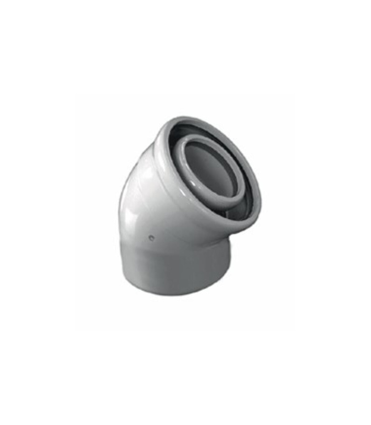 Codo M-H diámetro 100 ángulo 45°. Conductos y accesorios para la conducción y evacuación de humos y gases. Aparatos tradicionales instalación individual en interiores. Mural estanca y bajo Nox. Tubería coaxial de aluminio pintada en poliéster blanco. Juntas de silicona. Conducción de humos en aparatos tradicionales cámara estanca. Facilidad para la toma de muestras. Diversidad de adaptadores a caldera. El codo CCMH45100 de DISMOL es un elemento de tubería fundamental que permite realizar cambios de dirección precisos en instalaciones de conducción de fluidos o aire. Con un ángulo de 45° y un diámetro de 100 mm, este codo está diseñado para garantizar flujo eficiente y mínimo impacto en la presión, evitando turbulencias y asegurando un tránsito uniforme del material transportado.Fabricado con materiales de alta calidad y resistencia, el codo ofrece durabilidad y fiabilidad incluso en condiciones exigentes, como instalaciones industriales, sistemas de ventilación o redes de evacuación. S