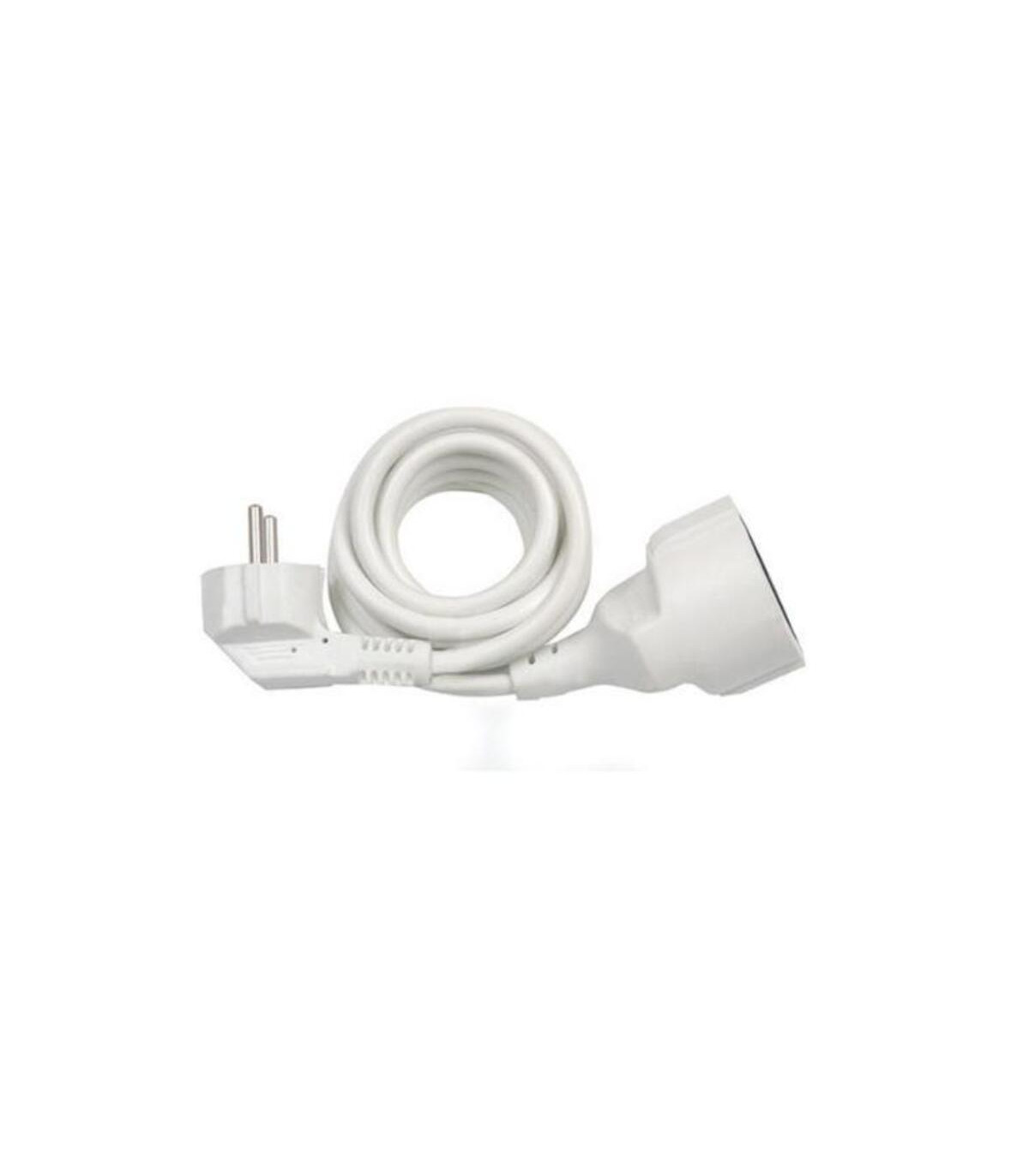 Prolongador 4m con manguera redonda 3x1,5mm2. Prolongador bipolar con clavija bipolar y toma de tierra lateral. Base protegida mediante obturadores.