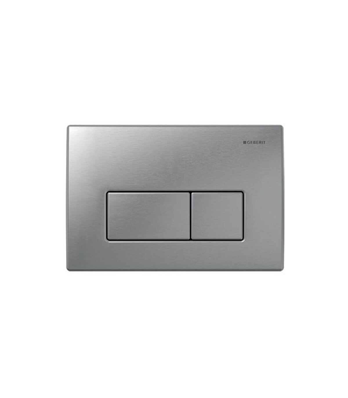 Pulsador Geberit Kappa 50, para doble descarga, fabricado en acero inoxidable cepillado. El pulsador Kappa 50 de GEBERIT, fabricado en acero inoxidable, combina diseño moderno y funcionalidad para sistemas de descarga empotrados. Su acabado elegante y resistente lo convierte en una opción ideal para baños contemporáneos, tanto en viviendas como en espacios públicos. Compatible con cisternas empotradas GEBERIT Kappa, este pulsador permite una doble descarga, contribuyendo al ahorro de agua y a una gestión eficiente del consumo.Gracias a su material de alta calidad, el Kappa 50 ofrece una excelente durabilidad y resistencia al desgaste, incluso en entornos de uso intensivo. Su instalación es sencilla y su mantenimiento mínimo, lo que lo convierte en una solución práctica y estética para proyectos de reforma o nueva construcción. GEBERIT garantiza con este modelo una perfecta integración entre tecnología y diseño.