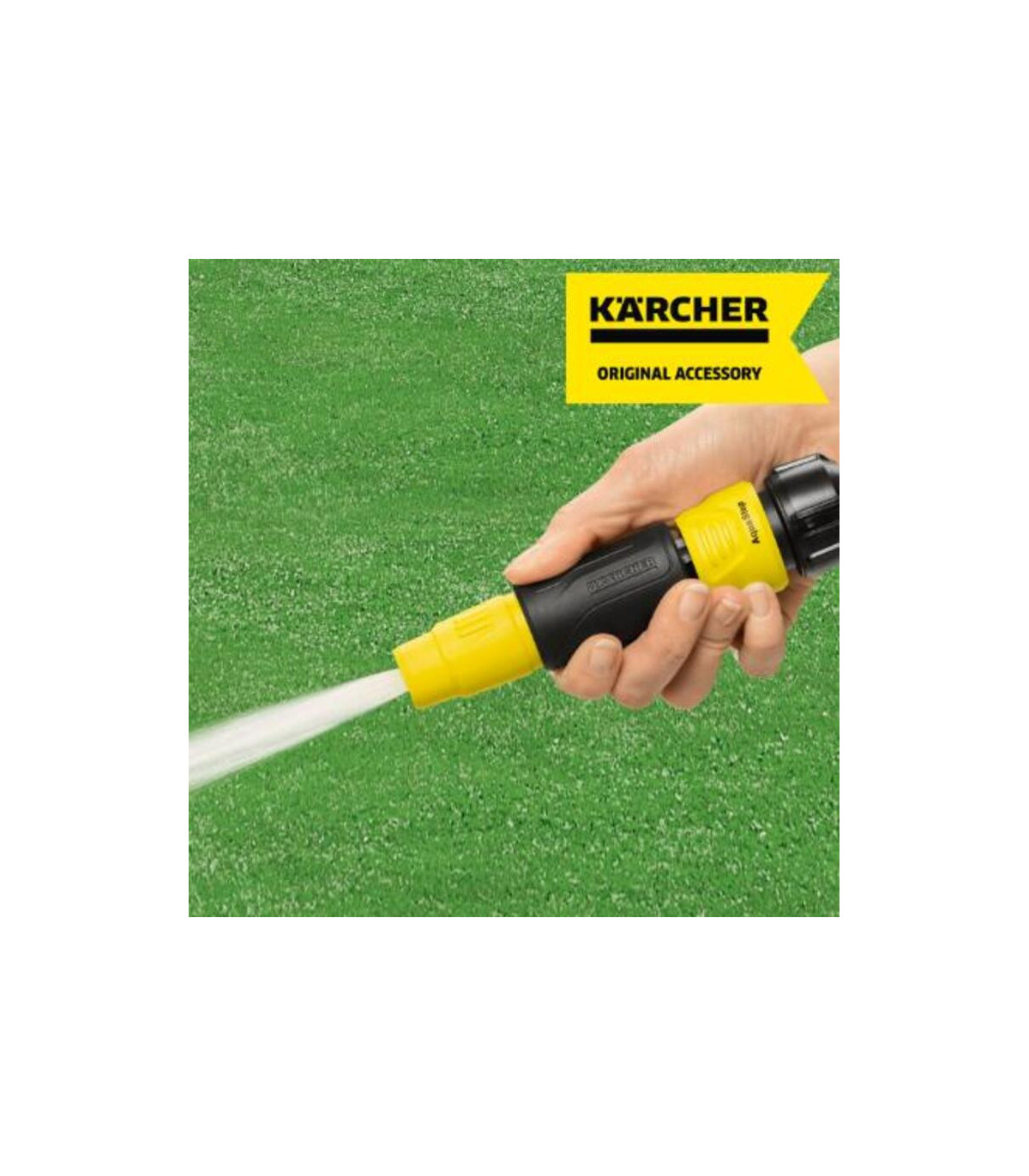 La lanza de riego Kärcher (ref. 2.645-264.0) es un accesorio versátil y funcional, pensado para cubrir todas las necesidades de riego en jardines, huertos, terrazas o macetas. Dispone de una boquilla con regulación progresiva que permite seleccionar distintos tipos de chorro, desde un flujo concentrado ideal para la limpieza de superficies o utensilios, hasta un riego en forma de ducha suave y uniforme para plantas delicadas. Este sistema de ajuste flexible ofrece un mayor control sobre el caudal de agua, optimizando su consumo y asegurando un riego eficiente.Fabricada con materiales de alta calidad, la lanza combina resistencia y durabilidad frente al uso frecuente y a las condiciones exteriores. Su diseño ergonómico facilita el agarre cómodo, evitando la fatiga durante sesiones prolongadas de riego, mientras que su estructura ligera y robusta garantiza un manejo sencillo. Además, es compatible con los sistemas de conexión de mangueras más habituales, lo que asegura una instalación r