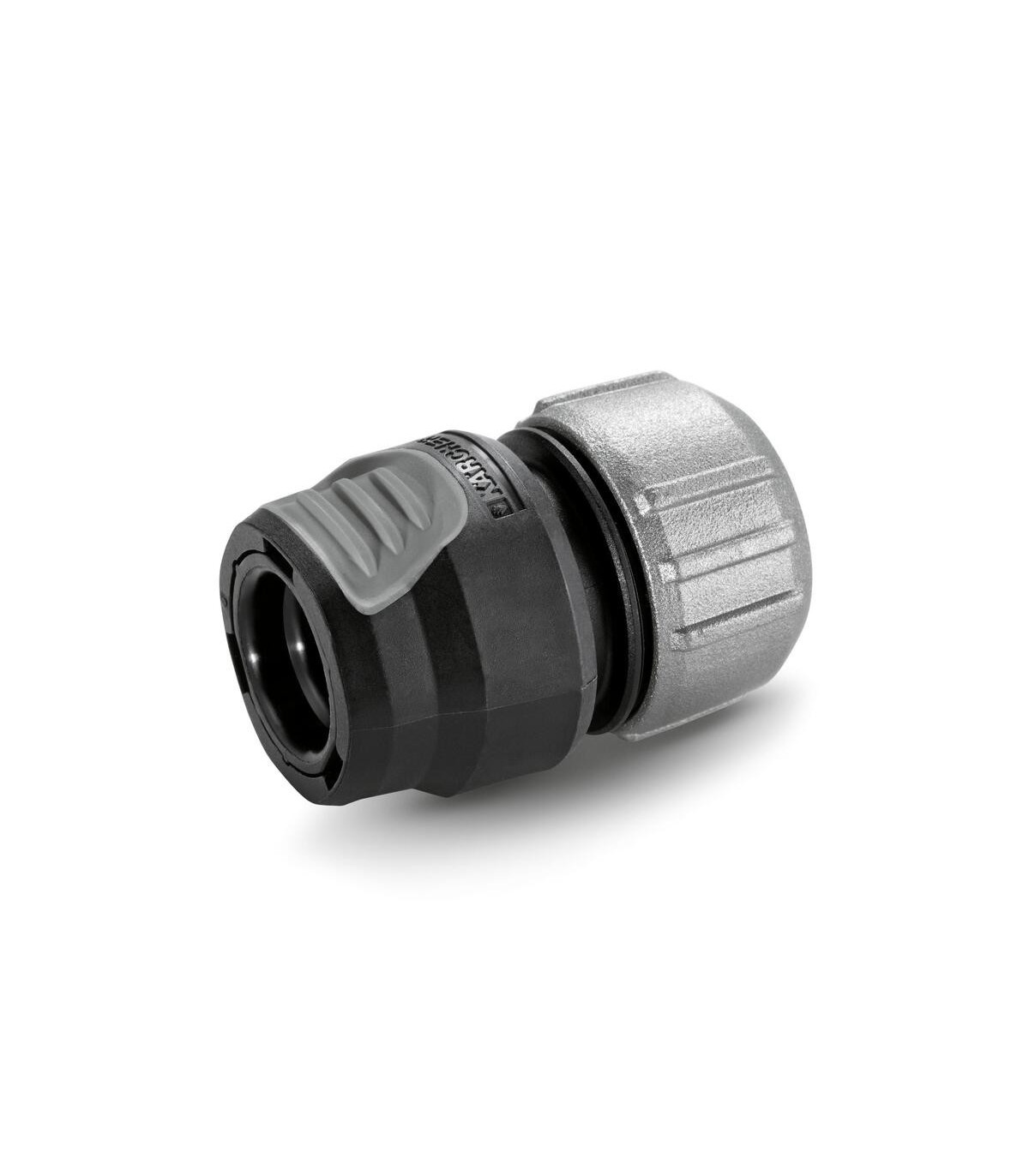 Acoplar, desacoplar y reparar fácilmente: con el conector de mangueras universal Premium con Aqua Stop de alta calidad de Kärcher. Realizado en aluminio a prueba de corrosión y con superficies de agarre de plástico blando para un manejo especialmente cómodo. El sistema de conexión flexible simplifica de forma significativa el riego de jardines y superficies de tamaño pequeño y mediano. Pues unas conexiones de grifo y unos conectores de mangueras eficaces son la base de un buen sistema de riego. El conector de mangueras universal Premium con Aqua Stop es compatible con los tres diámetros de manguera más habituales y todos los sistemas Click disponibles.