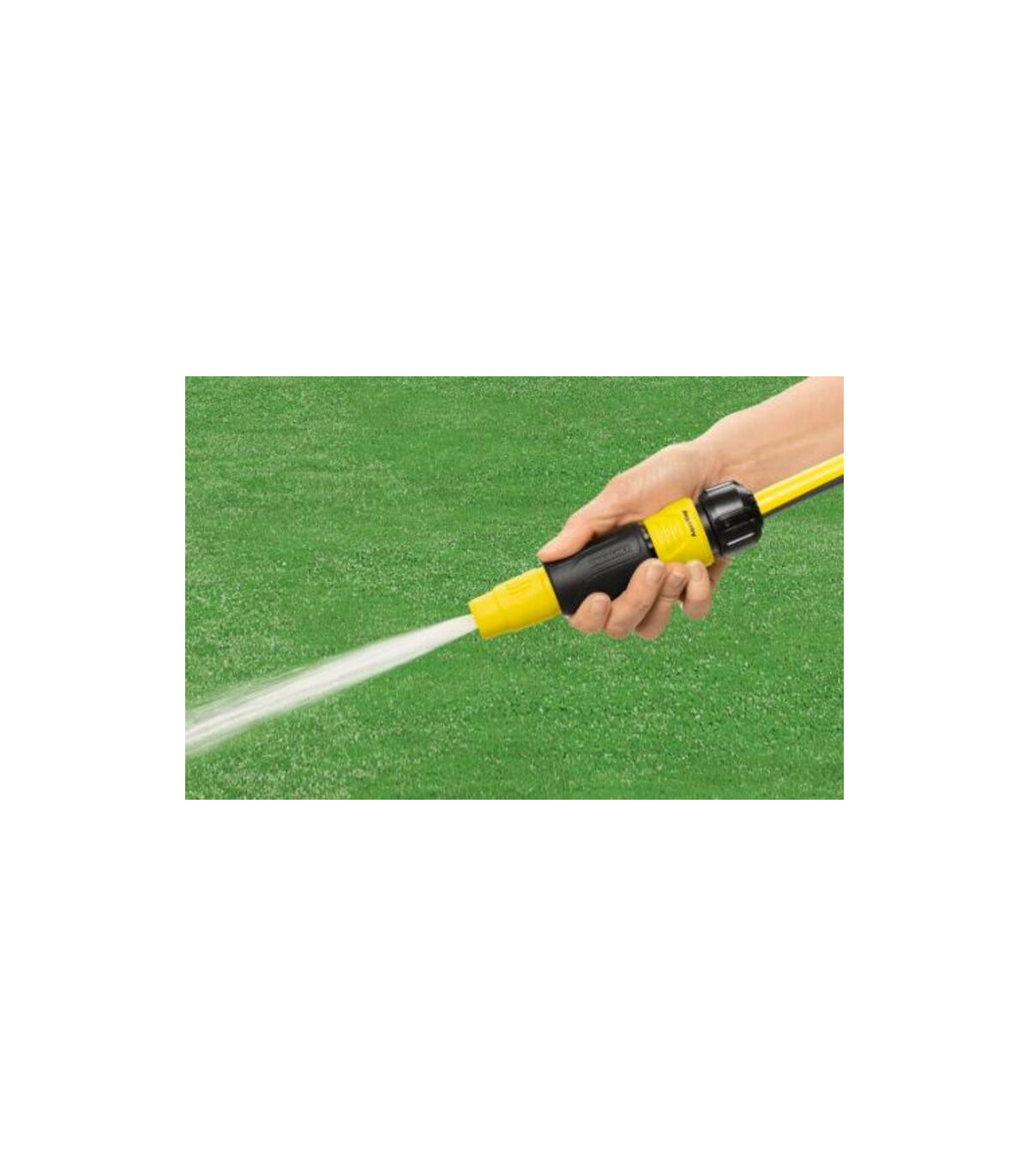 El kit de boquillas perfectamente diseñado para su jardín. La boquilla es ideal para tareas de riego sencillas. Gracias a los patrones de pulverización ajustables de forma continua, se puede ajustar la distribución de agua entre chorro de cono y chorro concentrado según sea necesario. De este modo, además de regar las flores y plantas, es posible eliminar la suciedad gruesa de todo el jardín. Si la boquilla no se usa, simplemente se puede girar la boquilla de pulverización para cerrar el caudal del agua. El kit incluye además una pieza de conexión de grifo G3/4" con reductor G1/2", así como 2 conectores de manguera resistentes, uno de los cuales con Aqua Stop, que impiden el paso del agua en el extremo de la manguera de riego también al abrir el grifo, por ejemplo, al extraer la boquilla. Además, las boquillas y acoplamientos de Kärcher son compatibles con todos los sistemas Click disponibles y se pueden conectar fácilmente a su manguera de riego.