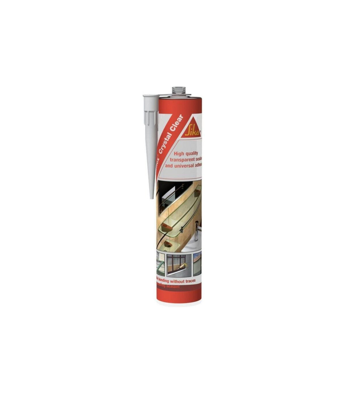 Masilla SikaFlex crystal clear transparente cartucho. Adhesivo y sellador elástico, transparente y universal. Sikafl ex Crystal Clear es un sellador y adhesivo elástico universal transparente, monocomponente, de curado por humedad, libre de disolventes.