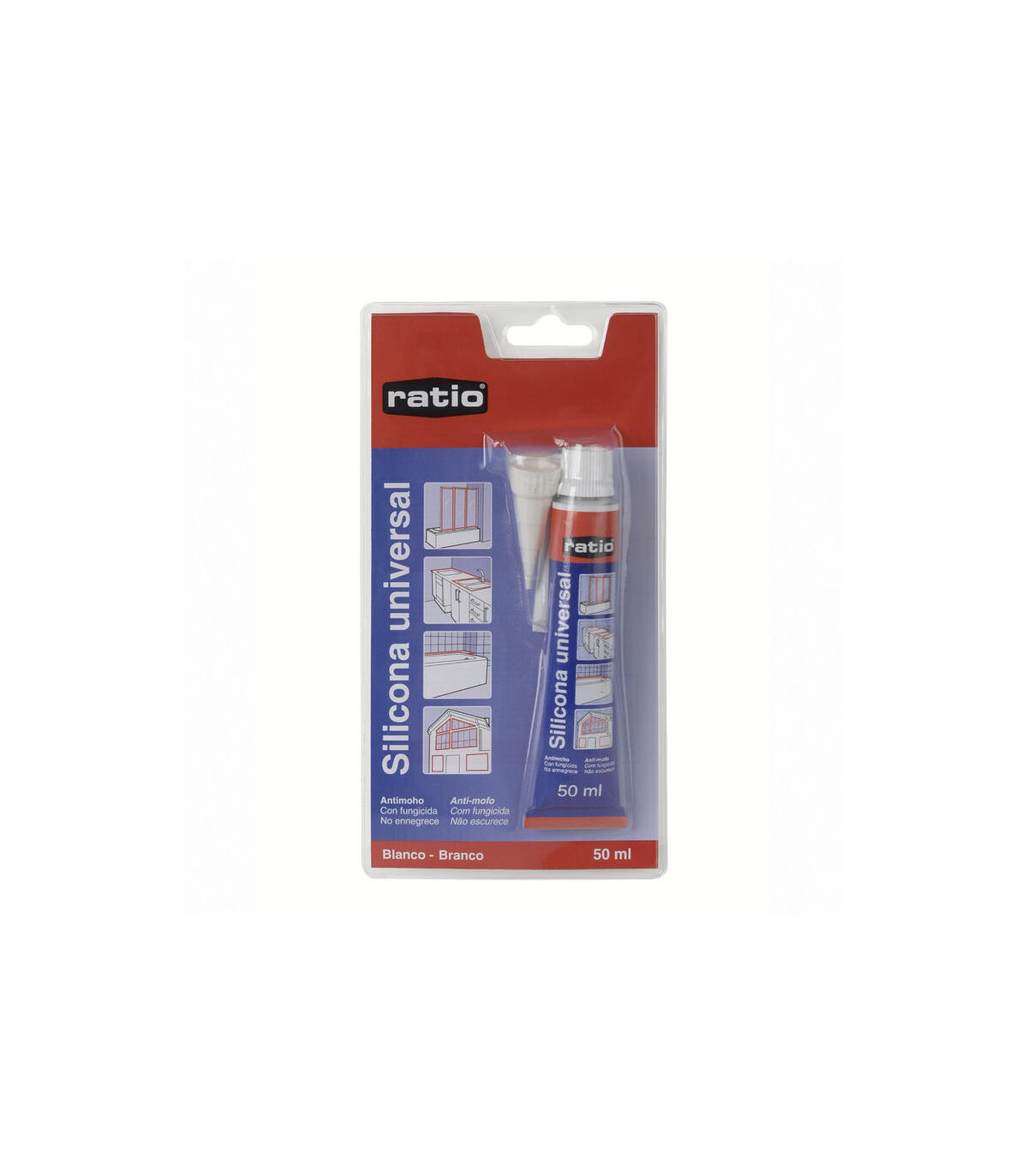 La Silicona Ácida Multiusos Ratio en color blanco, presentada en envase de 50 ml, es un sellador de alto rendimiento diseñado para ofrecer un acabado resistente, duradero y estéticamente impecable en una amplia variedad de aplicaciones. Su formulación ácida le permite adherirse eficazmente a superficies como vidrio, cerámica, aluminio, azulejos y metales, garantizando un sellado seguro y de larga duración. Ideal para trabajos de bricolaje, mantenimiento y construcción, proporciona un sellado hermético que protege contra filtraciones de agua, humedad y otros agentes externos.Esta silicona multiusos se distingue por su fácil aplicación, gracias a su consistencia uniforme que permite un control preciso del flujo y la colocación del producto. Una vez aplicada, se cura rápidamente formando una junta flexible y resistente a la deformación, evitando grietas o desprendimientos con el paso del tiempo. Su color blanco la hace especialmente adecuada para acabados visibles en baños, cocinas, vent