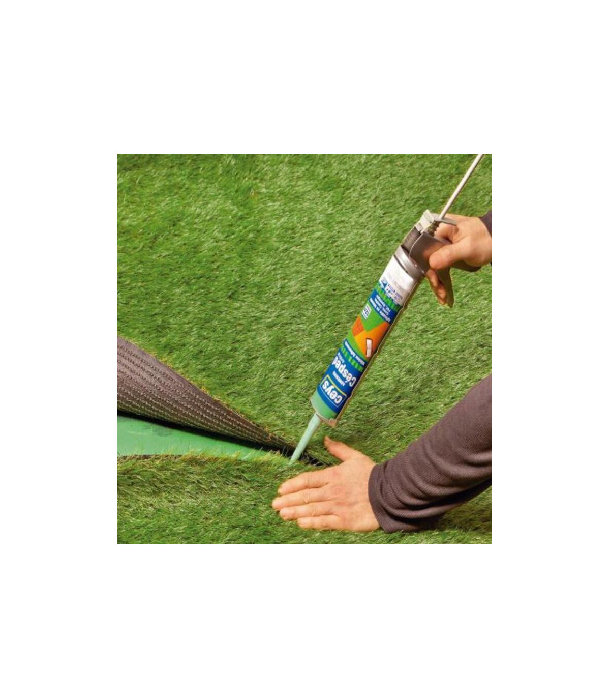 Adhesivo CEYS especial césped artificial 500gr (cartucho), con formulación especial para pegar poliestireno expandido o Porexpan en planchas, placas o lesetas, entre sí o combinados con otros materiales. No ataca las superficies. Aplicación directa en perímetro: 12m lineales de perímetro. Aplicación sobre banda de unión: 2m lineales de banda. Aplicación directa en perímetro: 96m lineales de perímetro. Aplicación sobre banda de unión: 16m lineales de banda. Césped artificial directamente a pavimento o bien con banda de unión El adhesivo especial para césped artificial de CEYS, con un contenido de 500 g en formato cartucho, es un producto profesional diseñado específicamente para la instalación de césped sintético. Este adhesivo proporciona una adhesión rápida y duradera sobre distintos tipos de superficies, incluyendo hormigón, madera, baldosas o bases de arena compactada, garantizando que el césped quede firme y estable incluso en condiciones de tráfico frecuente o exposición a la inte