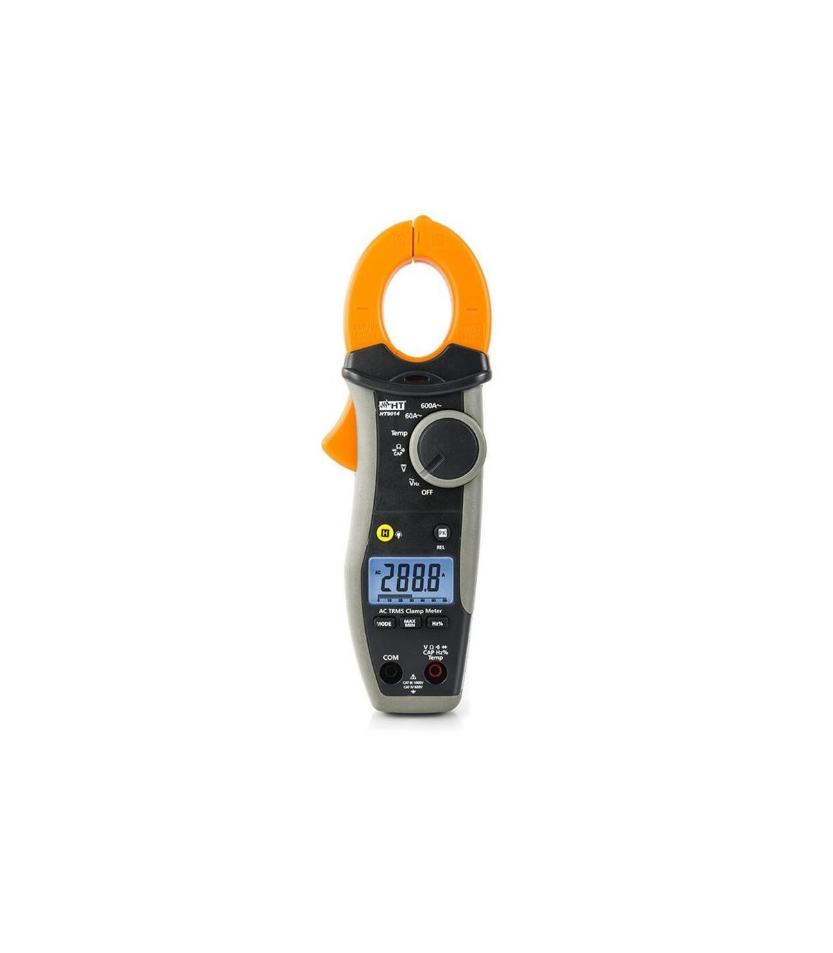 Pinza amperimétrica profesional que ha sido proyectada para medir corriente alterna de hasta 600A, y que está dotada de un amplio visualizador con función de auto apagado para preservar ka propia vida de la pila. Este modelo permite efectuar pruebas con una óptima resolución obteniendo un elevado campo de medida. La Pinza Amperimétrica HT9014TRMS de HT-Instruments és un instrument avançat i professional per a la mesura de corrent altern fins a 600 A. Dissenyada per a electricistes, tècnics de manteniment i instal·ladors industrials, ofereix lectures precises i fiables gràcies a la tecnologia True RMS, la qual permet mesurar amb exactitud corrents no sinusoidals o distorsionats, comuns en equips electrònics moderns.Aquest model compta amb pantalla digital de fàcil lectura, amb indicació clara dels valors mesurats, i un disseny compacte i lleuger que facilita el transport i l’ús en espais reduïts. La seva pinça oberta permet col·locar-la ràpidament al voltant de conductors sense necessit