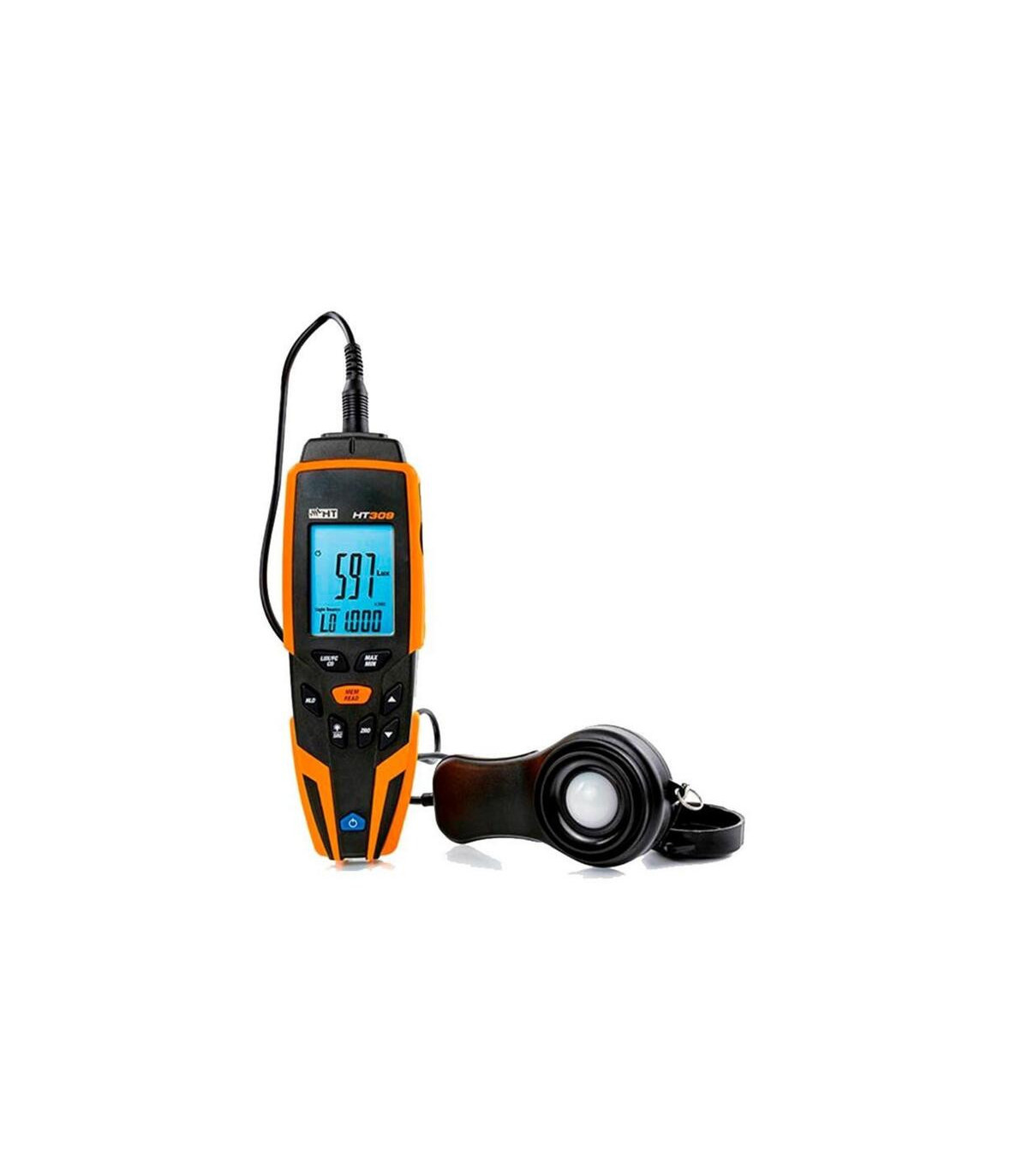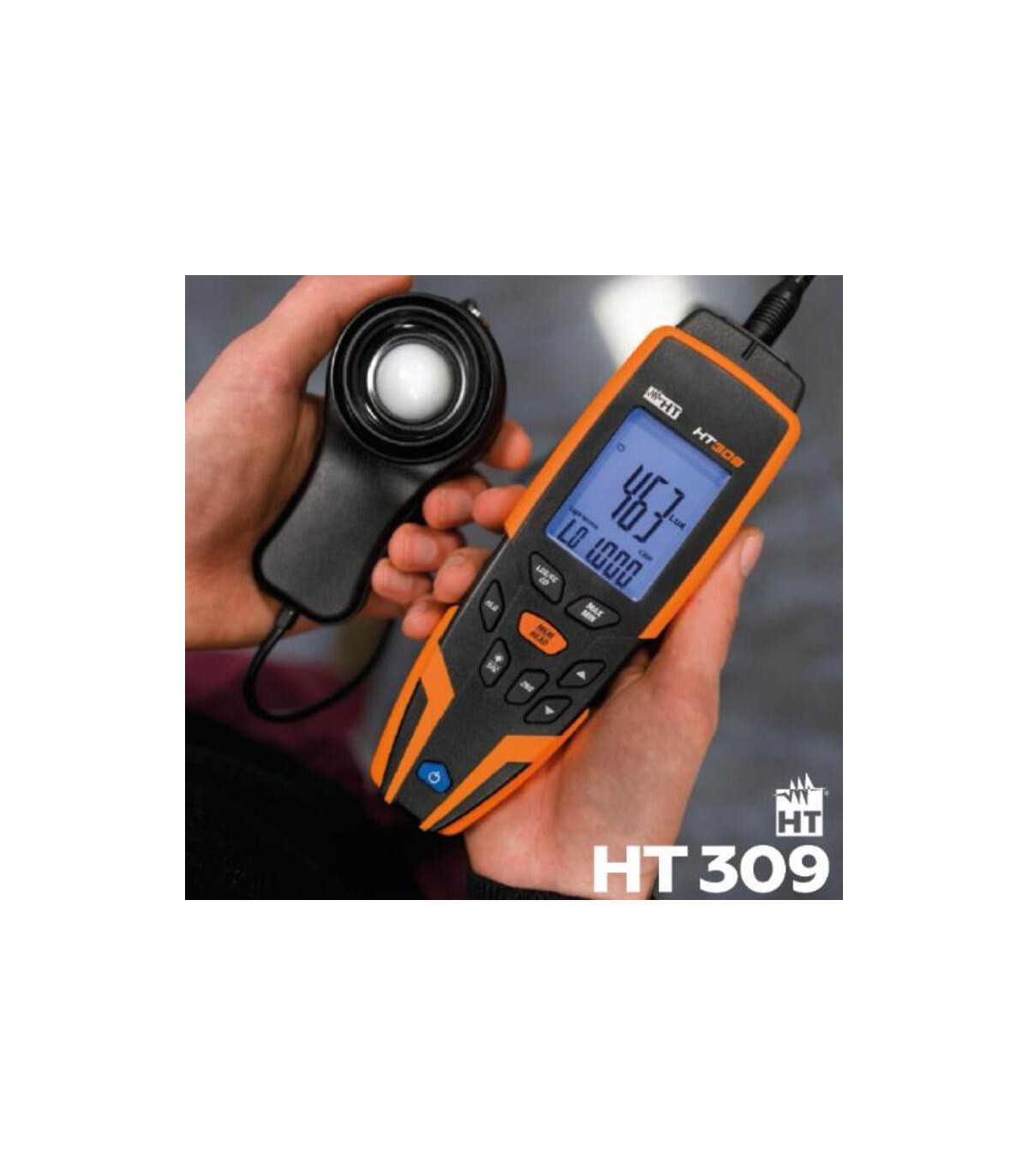 Luxómetro digital para la medida de la iluminación de fuentes estándares y de fuentes led de una amplia variedad de colores. Permite además la medida de la intensidad luminosa expresada en candela sobre la base de la distancia de la fuente luminosa. Dispone de una memoria interna para el almacenamiento de las medidas efectuadas. El Luxómetro Digital HT309 de HT-Instruments és un instrument professional dissenyat per a mesurar amb precisió els nivells d’il·luminació en entorns interiors i exteriors, incloent espais amb il·luminació LED, que sovint poden resultar difícils de mesurar amb equips convencionals. És ideal per a electricistes, tècnics d’instal·lacions d’il·luminació, dissenyadors d’espais i professionals que necessiten assegurar un nivell òptim de llum segons normatives i estàndards de confort i seguretat.Aquest luxómetro ofereix lectures digitals clares i fiables, amb un rang ampli que permet captar des de nivells molt baixos fins a entorns amb alta intensitat lumínica. El se