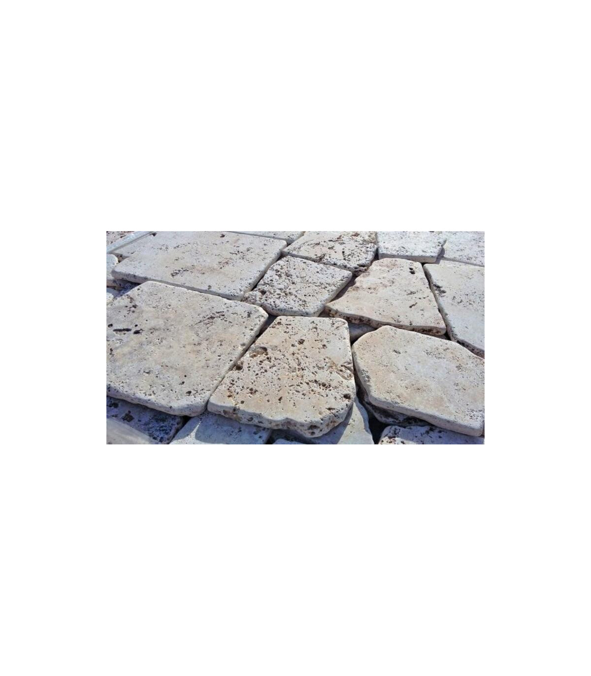 PIEDRA TRAVERTINO CANTO RODADO 2 CM 30 FILAS/PALET (FILA)