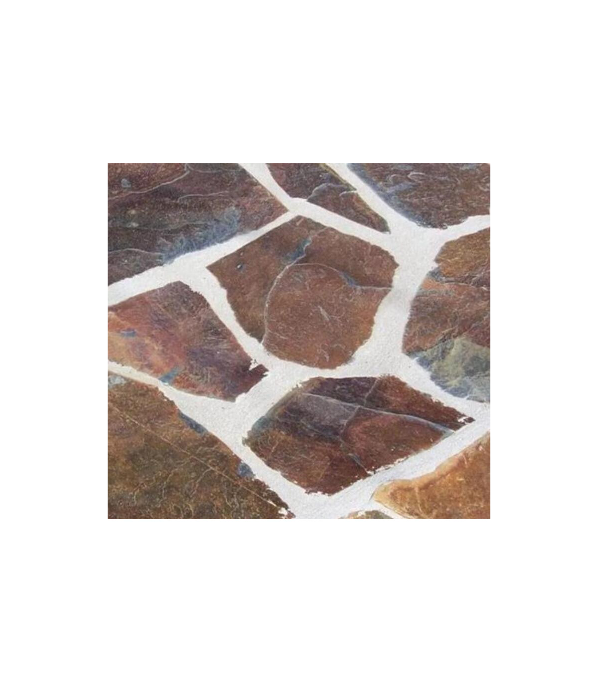 Pizarra Roja en formato irregular para revestimiento y pavimentos, tanto en zonas exteriores como interiores. Colores rojizos y ocres.