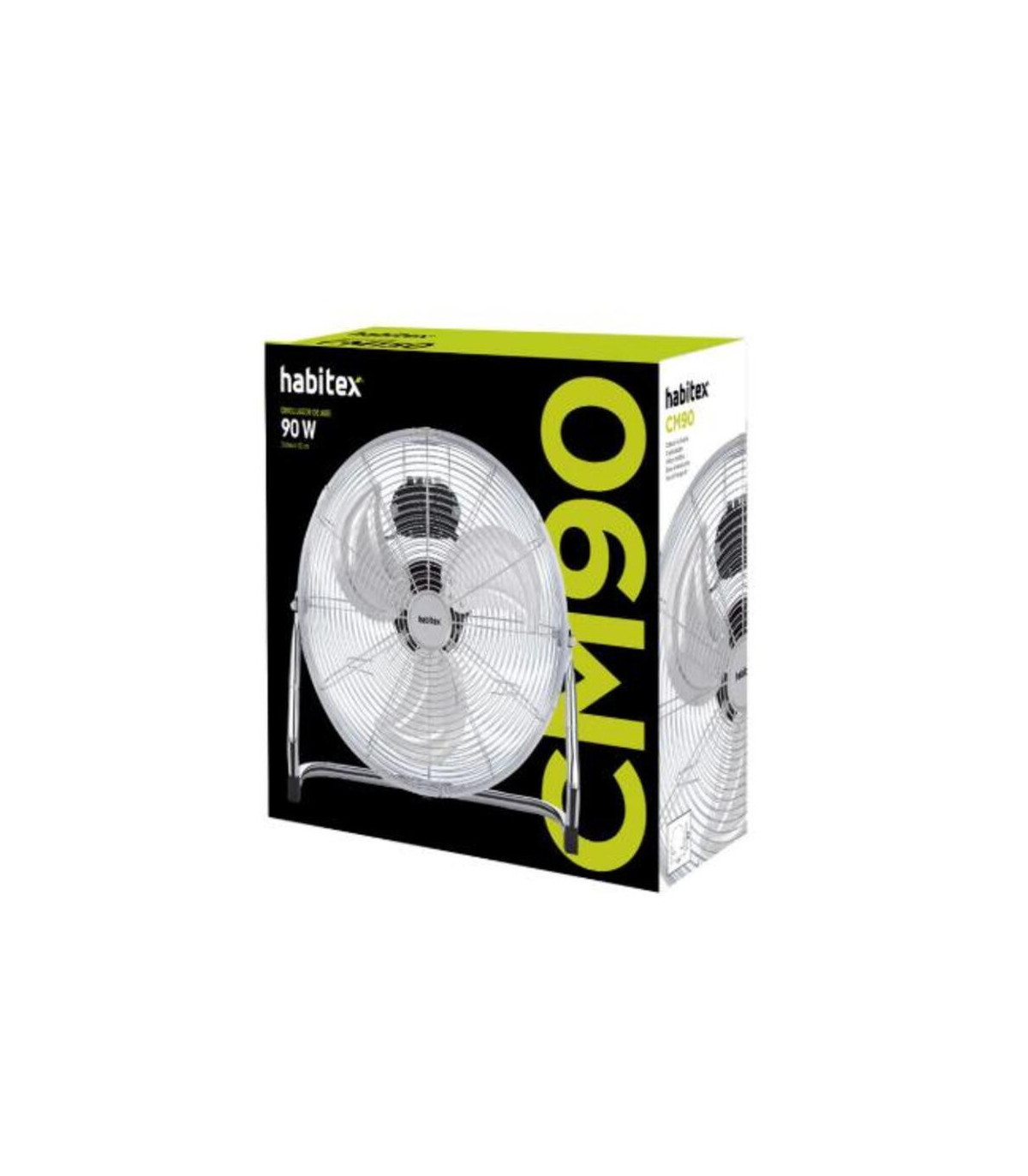 Este ventilador posee un cabezal inclinable y una base muy estable y antideslizante. Las hélices están fabricadas en metal y dispone de un asa de transporte para que puedas trasnportarlo fácilmente. Su potencia de 90W aporta un caudal de aire de 113,16 m3/min. Viene presentado en caja y tiene 3 años de garantía.