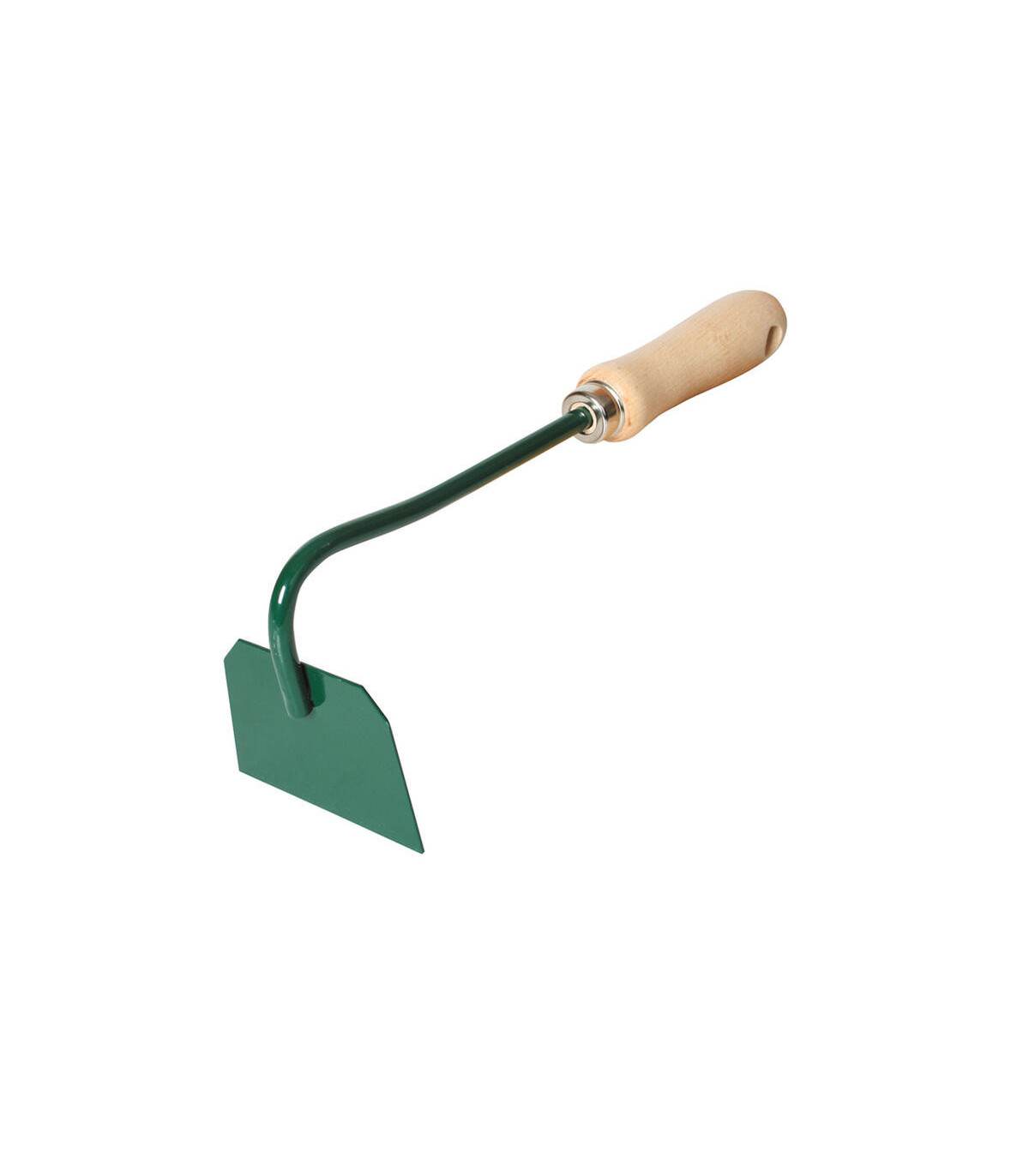 Acero pintado epoxi. Mango madera barnizada fijado con virola metálica.
