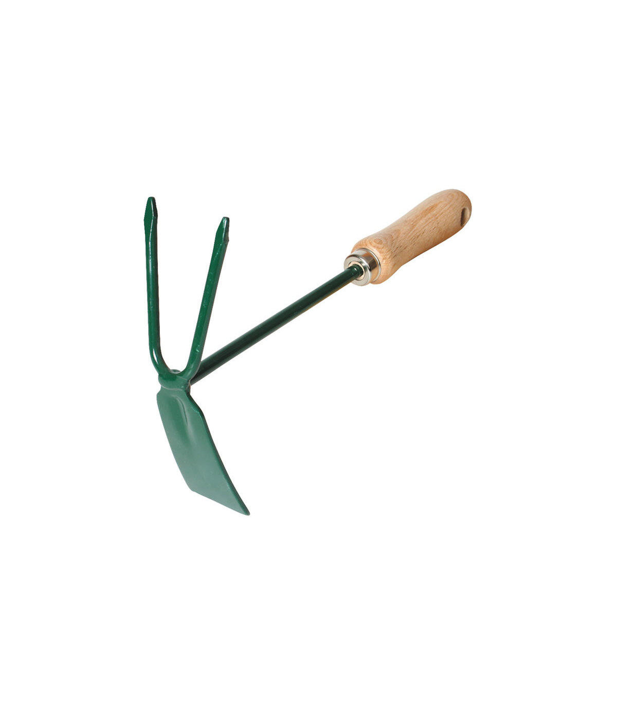 Acero pintado epoxi. Mango madera barnizada fijado con virola metálica.