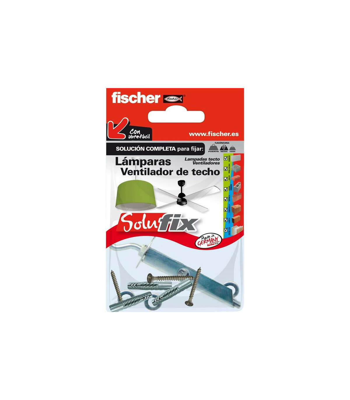 Kit fijación lámpara techo/ventilador bolsa. Contenido: 1 taco vuelco VH M5 + 3 tacos UX 6x35 R + 3 arandelas M5 + 3 tornillos 4,5x40. El 502689 de FISCHER es un kit de fijación para lámparas de techo y ventiladores, pensado para garantizar una instalación segura y estable de luminarias y aparatos de ventilación. Cada componente del kit está diseñado para ofrecer una sujeción fiable, evitando movimientos indeseados o caídas accidentales, y asegurando que la instalación cumpla con los estándares de seguridad. Es ideal tanto para uso doméstico como profesional, proporcionando comodidad y tranquilidad durante el montaje.Fabricado con materiales resistentes y duraderos, el kit FISCHER protege contra el desgaste y la exposición al uso diario, asegurando una larga vida útil del sistema de fijación. Su diseño práctico permite un montaje rápido y sencillo, facilitando la instalación de lámparas y ventiladores sin complicaciones y garantizando un acabado seguro y profesional en cualquier techo.