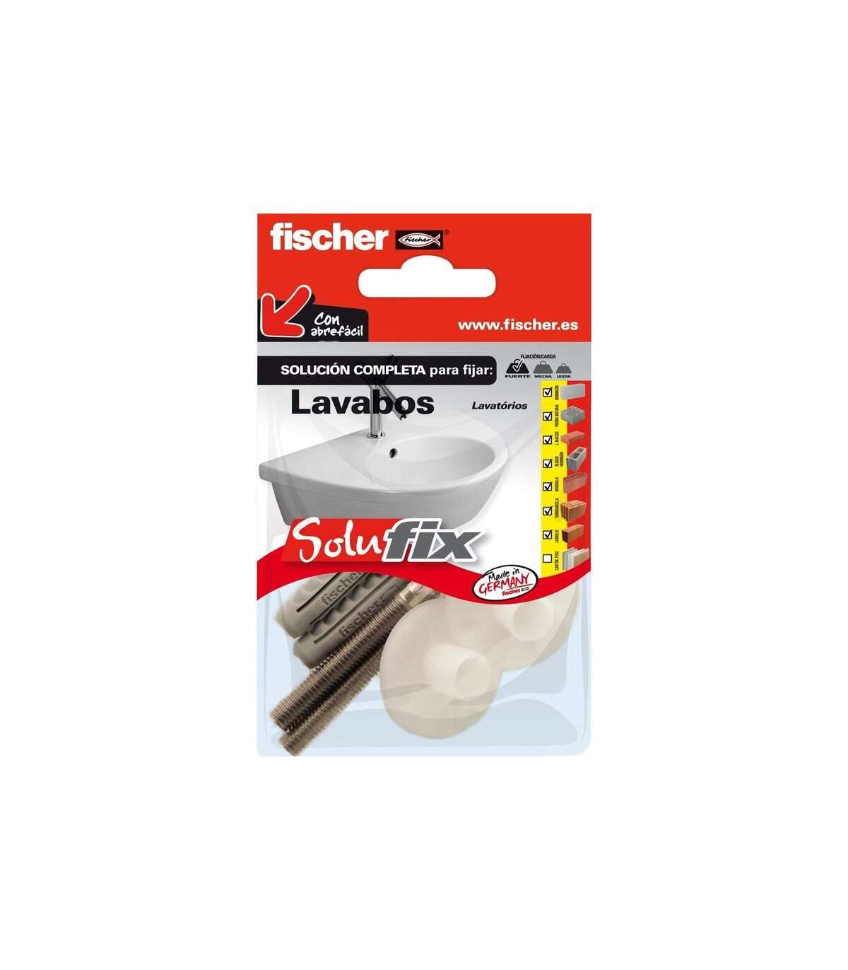 Kit fijación lavabo suspendidos bolsa. Contenido: 2 tacos SX 10x50 + 2 espárragos M8x110 + 2 tuercas nylon BUM. El Kit de Fijación para Lavabo Suspendido (referencia 502695) de Fischer es un conjunto diseñado para instalar de manera segura y estable lavabos suspendidos en baños y aseos. Este kit incluye todos los elementos necesarios para asegurar que el lavabo quede firmemente anclado a la pared, evitando movimientos o desplazamientos que puedan comprometer la seguridad y funcionalidad del equipamiento.Cada bolsa contiene 1 unidad, proporcionando una solución completa y práctica para la instalación. Fabricado con materiales resistentes y duraderos, el kit garantiza fiabilidad, estabilidad y larga vida útil en el montaje. Su diseño facilita un montaje rápido y seguro, convirtiéndolo en una opción ideal para profesionales y usuarios que buscan comodidad, eficiencia y seguridad en la instalación de lavabos suspendidos en entornos residenciales o comerciales.