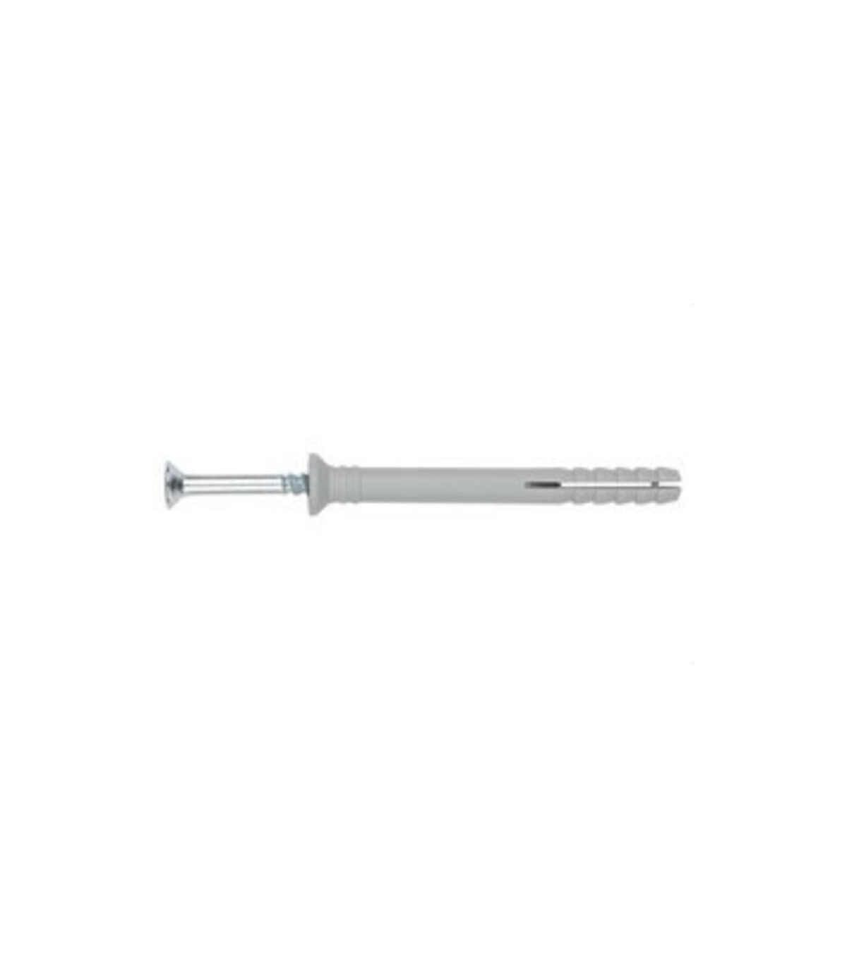 TCCA06080 Anclajes plásticos. Taco clavable de poliamida 6.6, premontado con tornillo rosca-arpón. Taco con cabeza avellanada (6 x 80 Ø6, 100 uds.) Producto hecho en nylon. Recubrimiento zincado. Recomendado para usar en: hormigón, hormigón hueco, hormigón celular, ladrillo macizo, ladrillo de adobe, ladrillo hueco, piedra Instalación con herramienta atornillador, golpe. Huella pozidriv, avellanada. Recomendado para la instalación de anclaje espalderas, anclaje estantería, anclaje extintor, anclaje tendedero, barandilla, cartel en un centro comercial, farol... entre otros. El taco clavable TC-CA de Index, fabricado en poliamida de alta resistencia, es un elemento de fijación diseñado para ofrecer un anclaje seguro y confiable en superficies de construcción como hormigón, ladrillo o materiales huecos. Con unas dimensiones de 6x80 mm y un diámetro de 6 mm, este taco permite la instalación rápida y eficiente de diversos elementos, asegurando estabilidad y durabilidad en el tiempo.Su diseñ