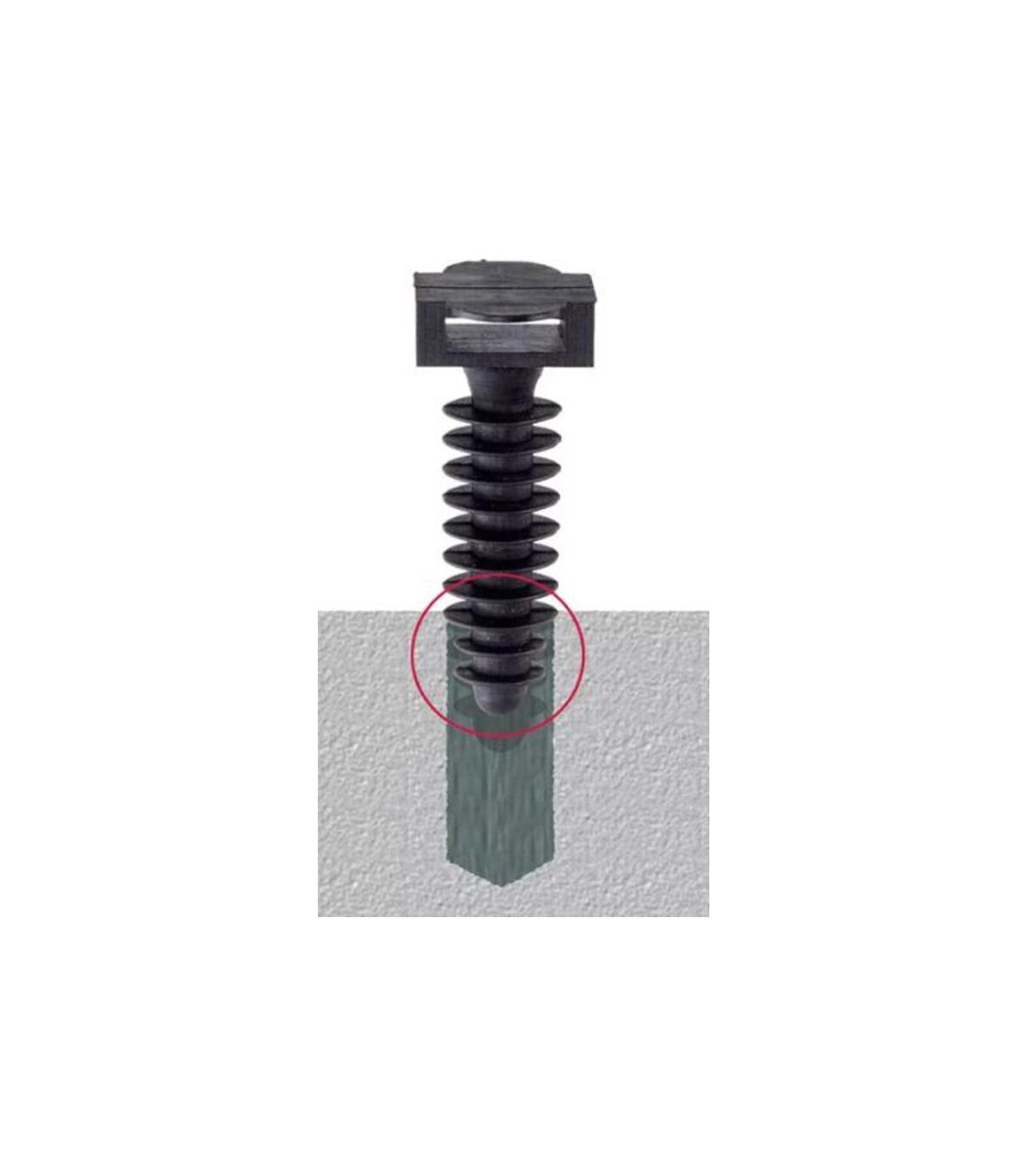 Taco de golpe color negro para bridas hasta 9 mm de ancho. Necesita taladro previo con broca Ø6 mm. Anillos autocentrables para una recta y fácil fijación en el agujero y aletas en la cabeza para una mejor adaptación a los cables. Taco de nylon autocentrable de color negro, diámetro 6 mm. Ideal para fijaciones en materiales huecos o paneles de yeso. Proporciona una sujeción segura y rápida, facilitando la instalación sin necesidad de herramientas adicionales. Uso común en trabajos de bricolaje y construcción.